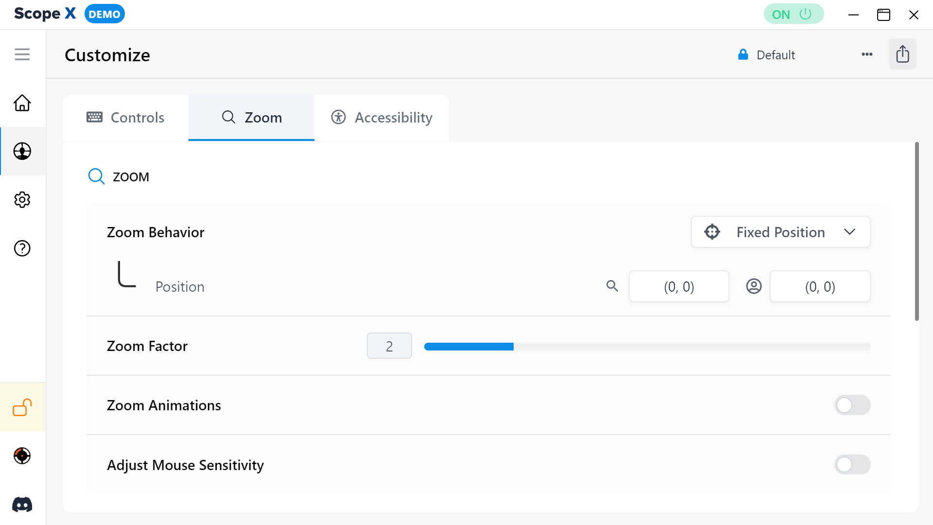 Aktiviere die Vergrößerung mit einem Tastendruck, erstelle eine personalisierte Fokusform und passe die Empfindlichkeitssteuerung an – alles über ein einziges, benutzerfreundliches Overlay.