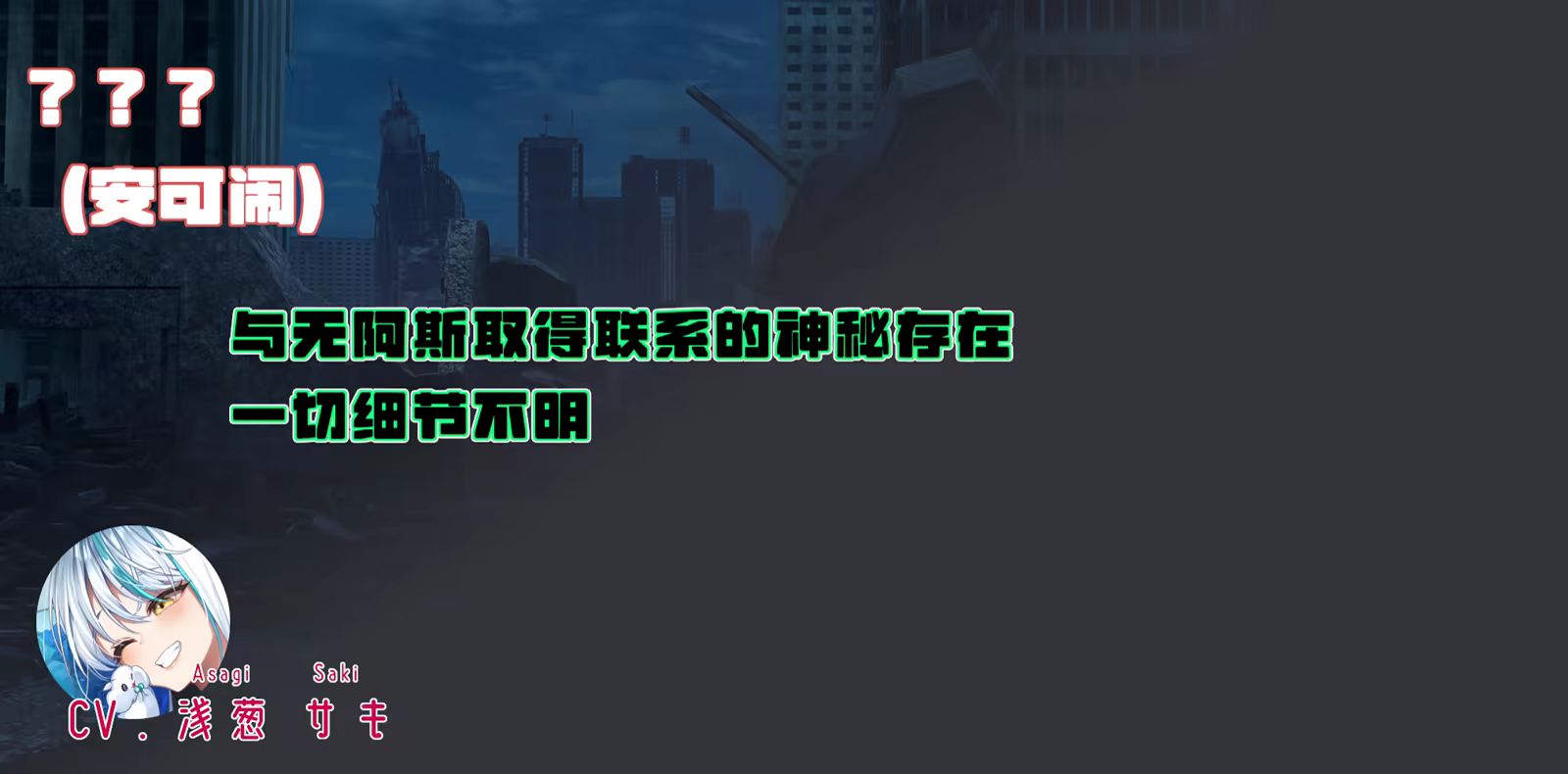 角色配音由豪华的虚拟声优阵容担任:主角仿生人尼尔阿斯(Niluas)由「白鳥怜奈(Rena Shiratori)」配音,神秘存在安可闹(Unknown)由「浅葱サキ(Saki Asagi)」配音