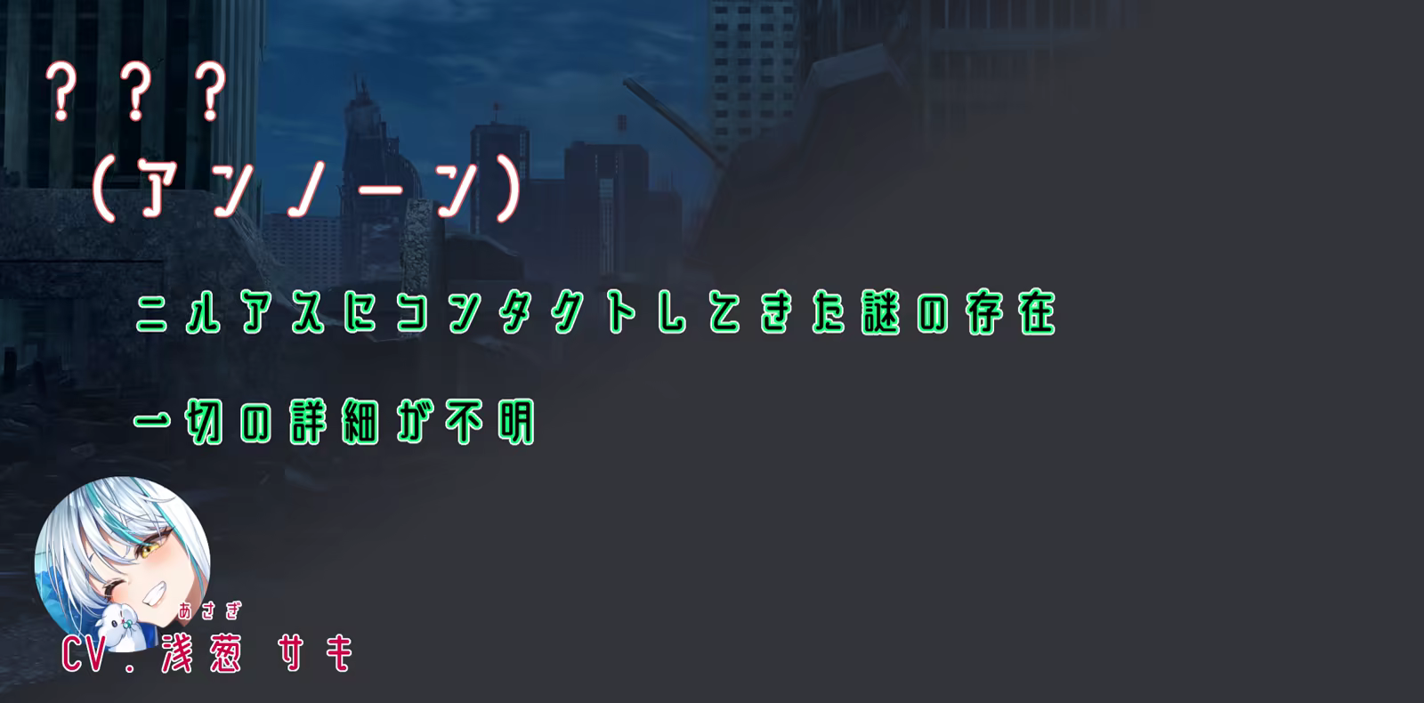 キャラクターボイスを務めるのは、主人公アンドロイドのニルアス役に白鳥怜奈さん、謎の存在アンノーン役に浅葱サキさんで、豪華なV声優陣です。
