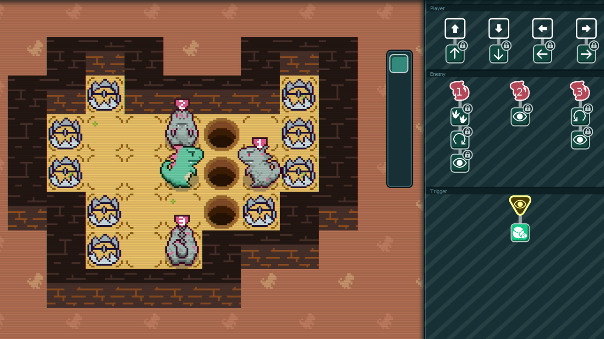 A pixel-art puzzle game where you can rewrite the rules! Swap commands to create: healing from traps, Medusa petrification, infinite fireball loops?! Play as an adorable little dinosaur🦖 on a mind-bending adventure to save the world!