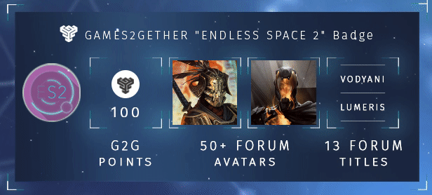 Join the GAMES2GETHER community now, and receive the ENDLESS™ Space 2 badge (unlocks points, dozens of avatars and titles to customize your GAMES2GETHER profile)
