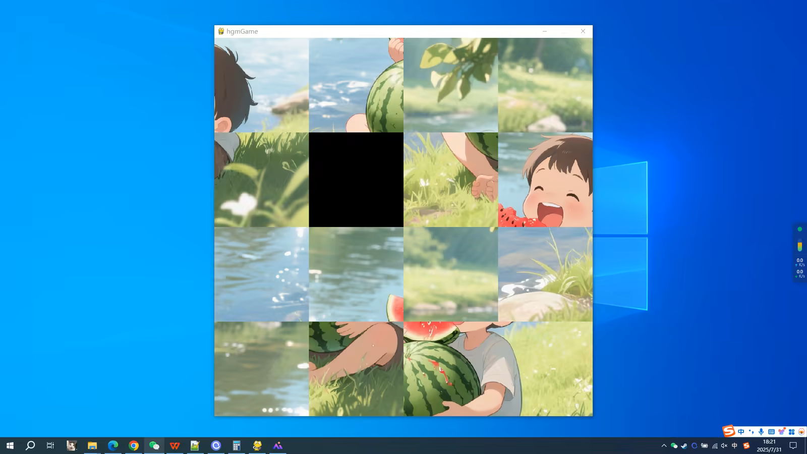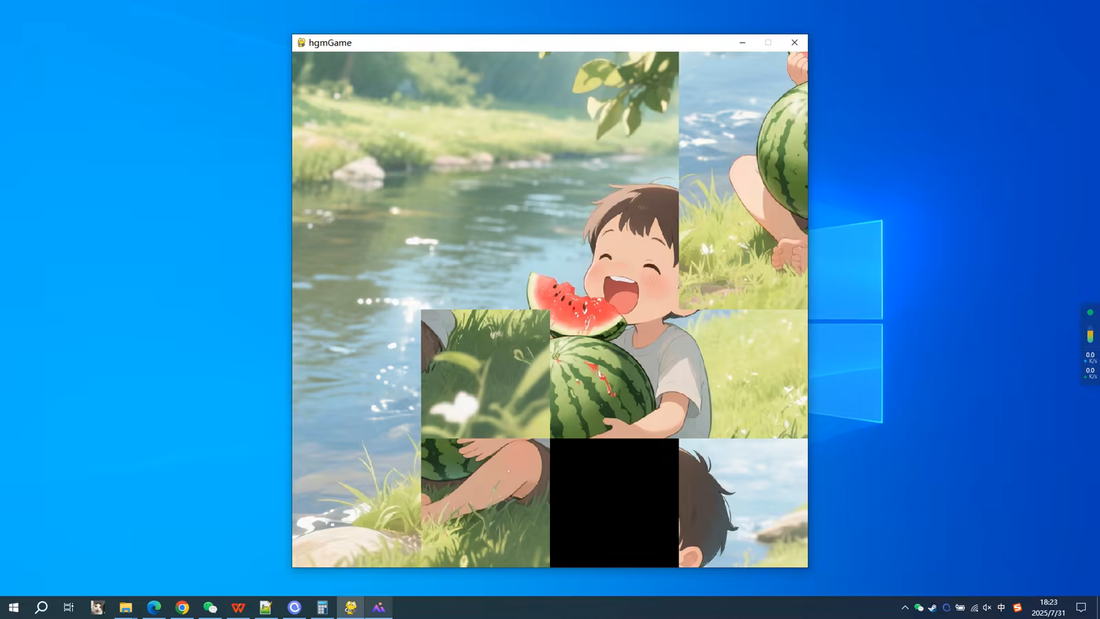 Game steps: Click the left mouse button on the image around the black square, and the image and black square will switch positions. The goal is to assemble all the small images into a complete image. The complete image is as follows: