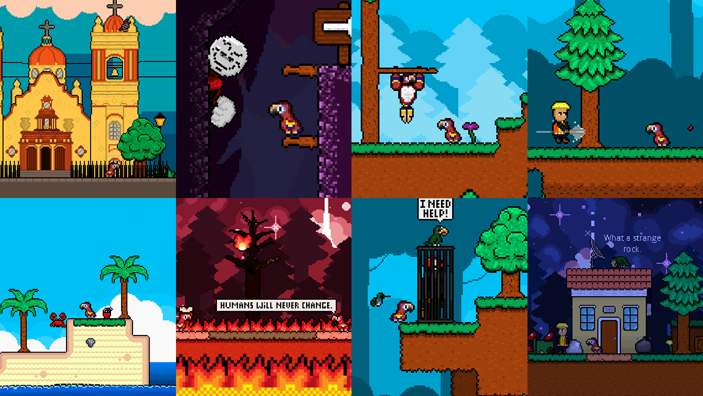 🦜Mawkey The Last Macaw is a 2D pixel art adventure in which we control Mawkey, trying to prevent the destruction of the environment and the mistreatment of animals in Honduras.