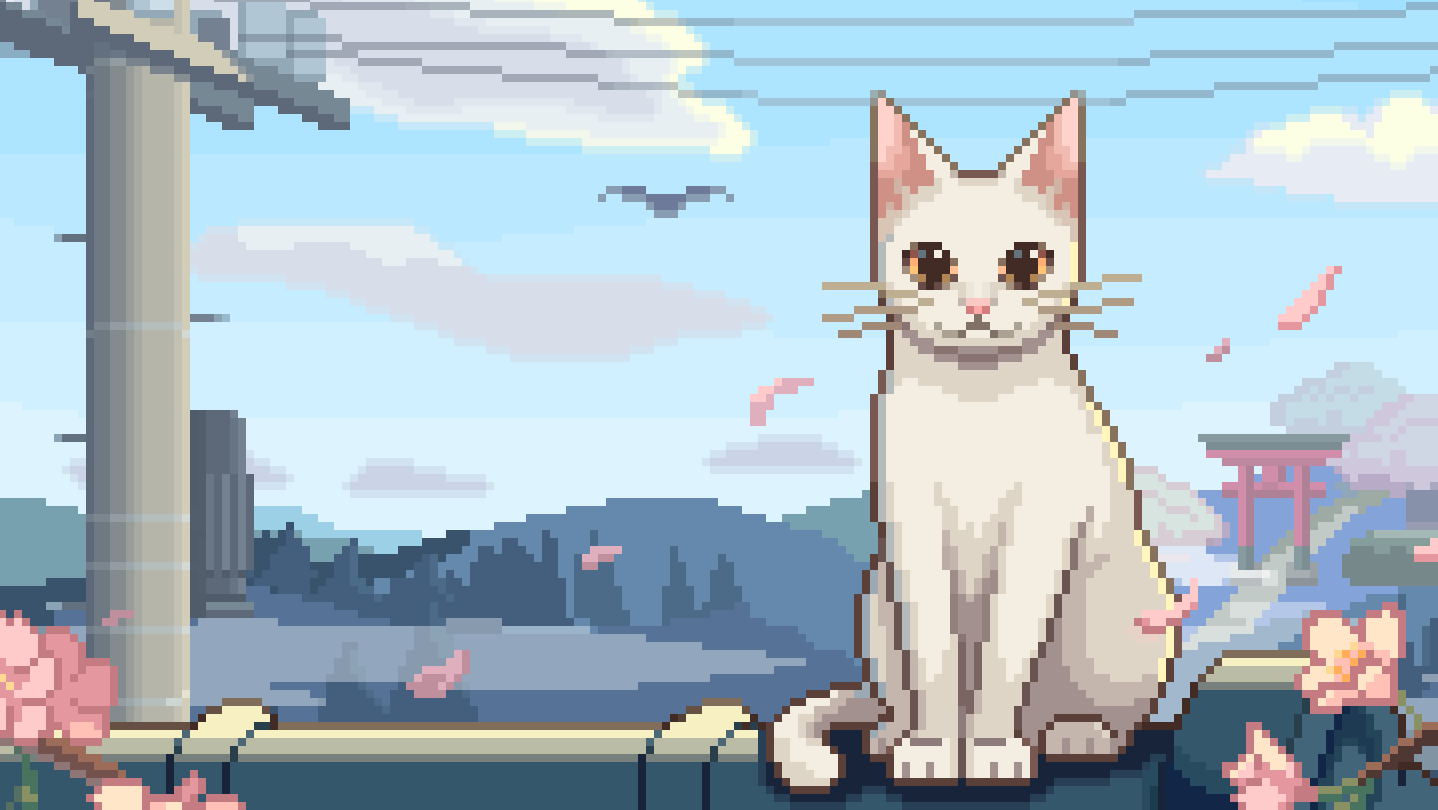 Explore Nanoha Town, in the idyllic Japanese countryside, from a cat's perspective during the cherry blossom season.