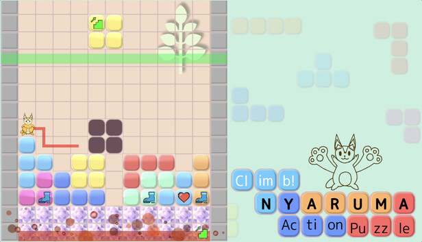 “Climb! NYARUMA Action Puzzle” is a unique blend of falling-block puzzle and character action gameplay.