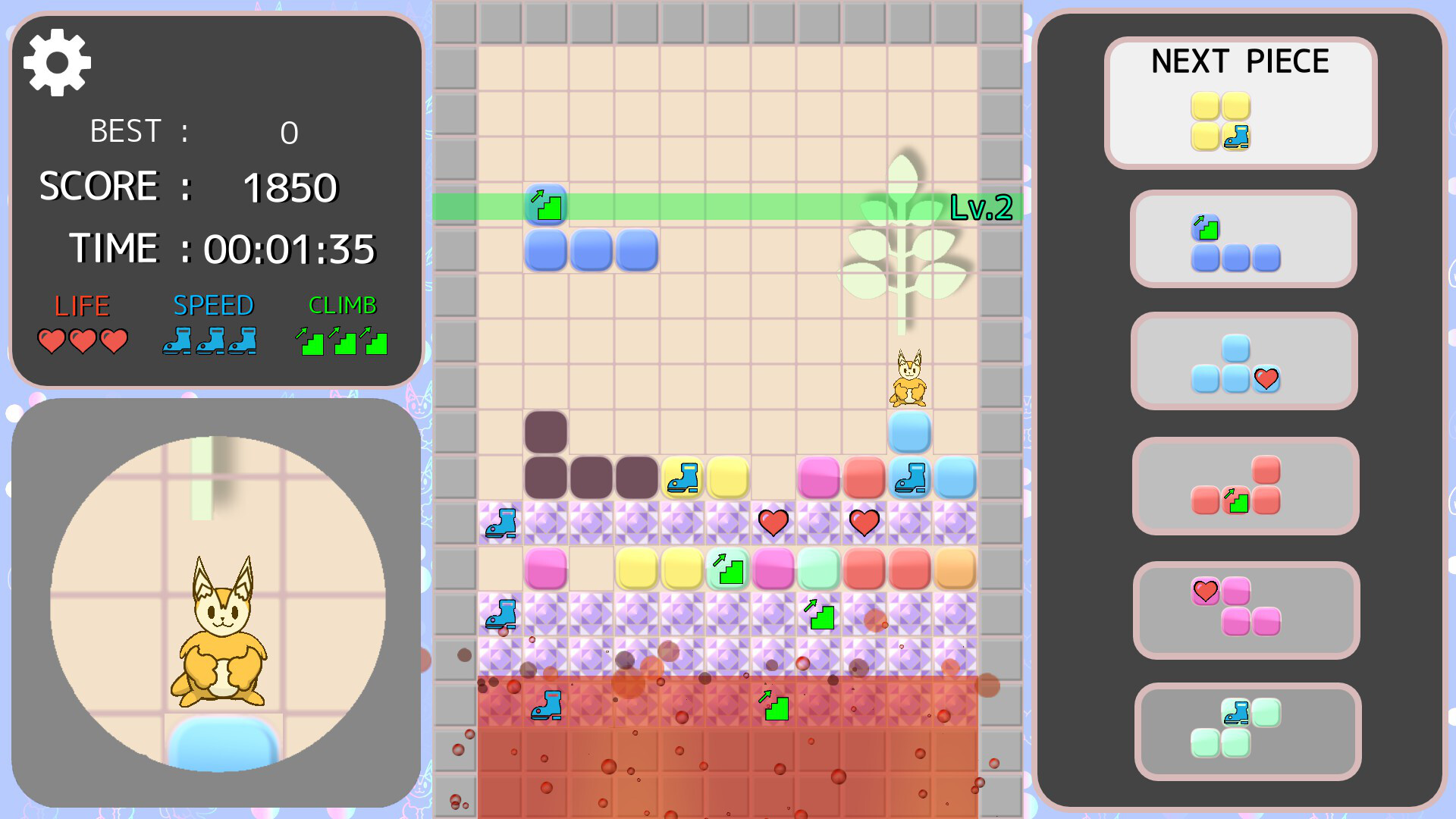 Guide the irresistibly cute creature “Nyaruma” by stacking falling blocks, escaping rising lava, and reaching the goal!