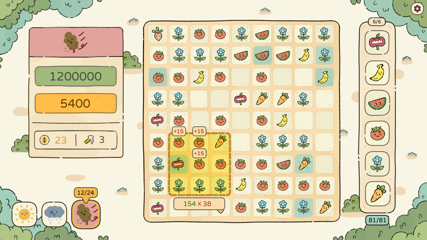 Start with a 3×3 plot and expand your garden tile by tile. Harvest and replant strategically to maximize your yield and maintain the powerful combo.