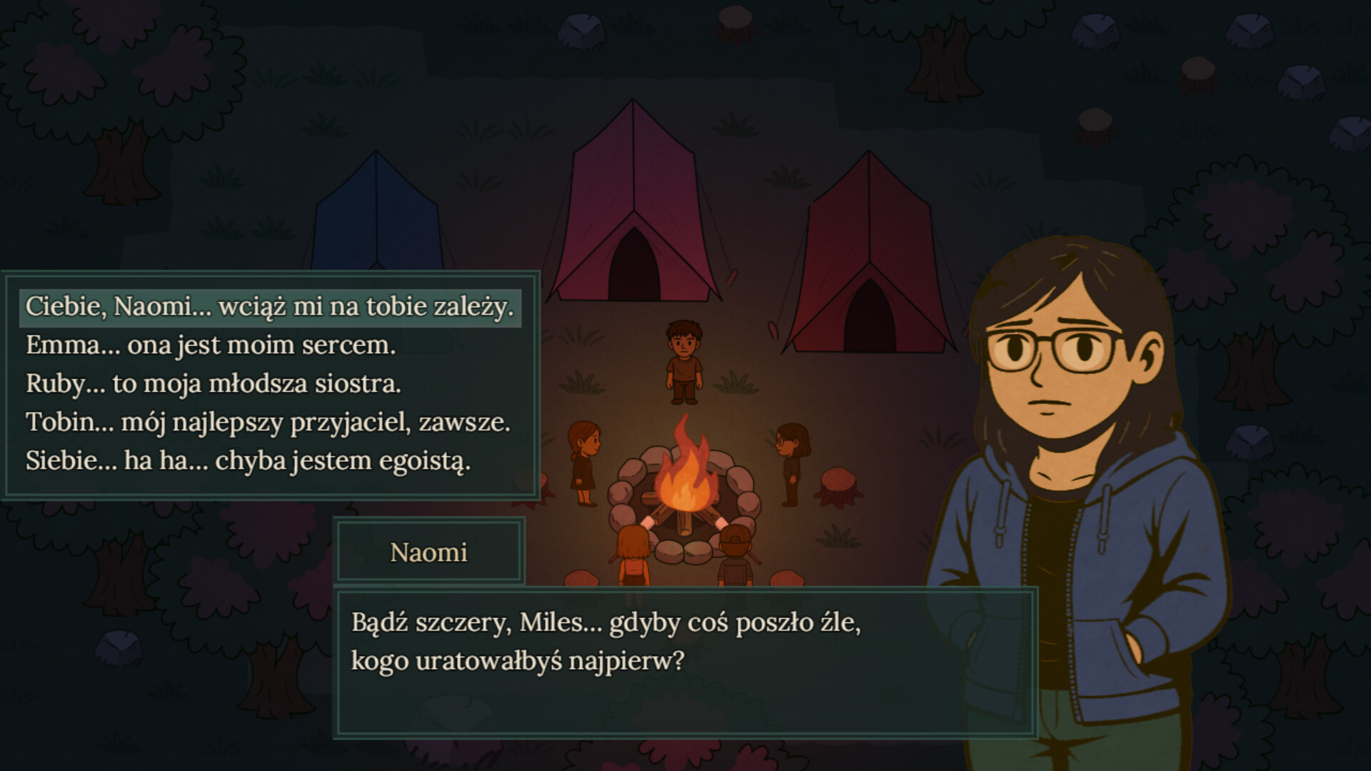 Szczera i troskliwa, ale obecność Naomi budzi zazdrość. Chce ufać Milesowi, lecz zaczyna wątpić.