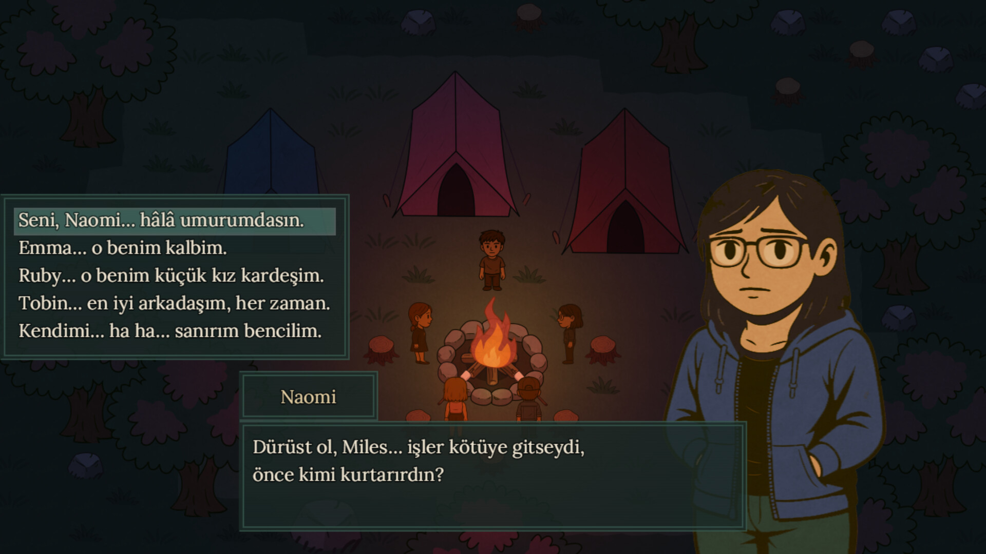 Miles’ın çocukluk arkadaşı. Dışarıda sadık ve neşeli, ama derinlerde sevdiklerini kaybetmekten korkuyor.