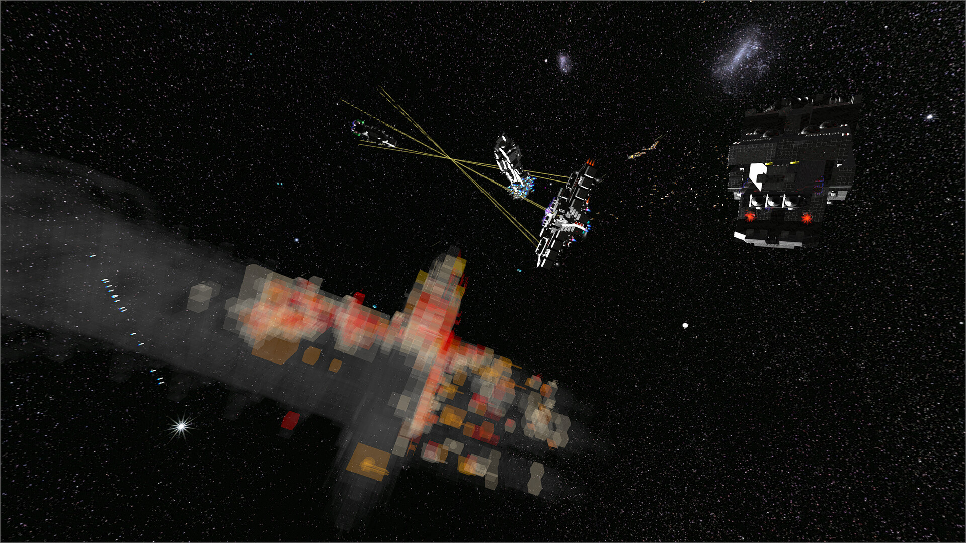 Design massive ships, bristling with weapons, on a macro scale. Engage in fleet-vs-fleet battles, featuring many different tactics. Play alone or in Coop combat missions, or form two teams of players (each with own fleet) to fight in an arena.
