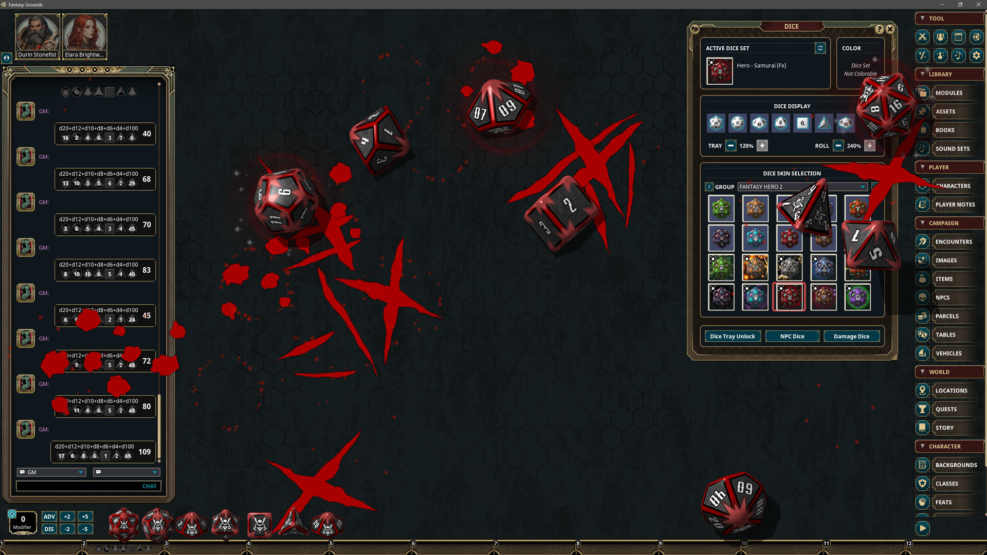 The free Fantasy Grounds virtual tabletop (VTT) software and any ruleset.