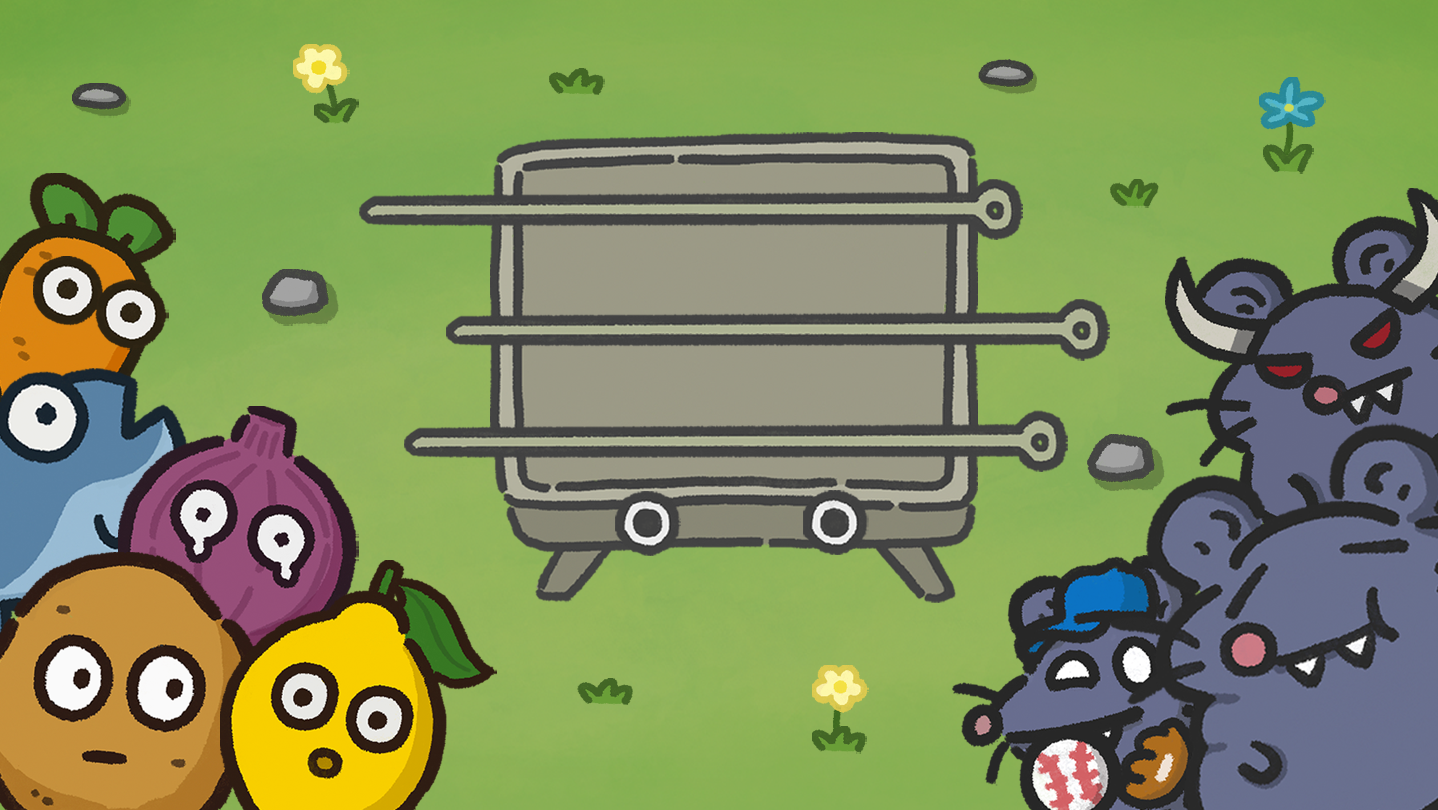 You have been chosen as the new Grillmaster! Your foes are not scary monsters, but a cheeky horde of mice drawn by the smell of your skewers.
