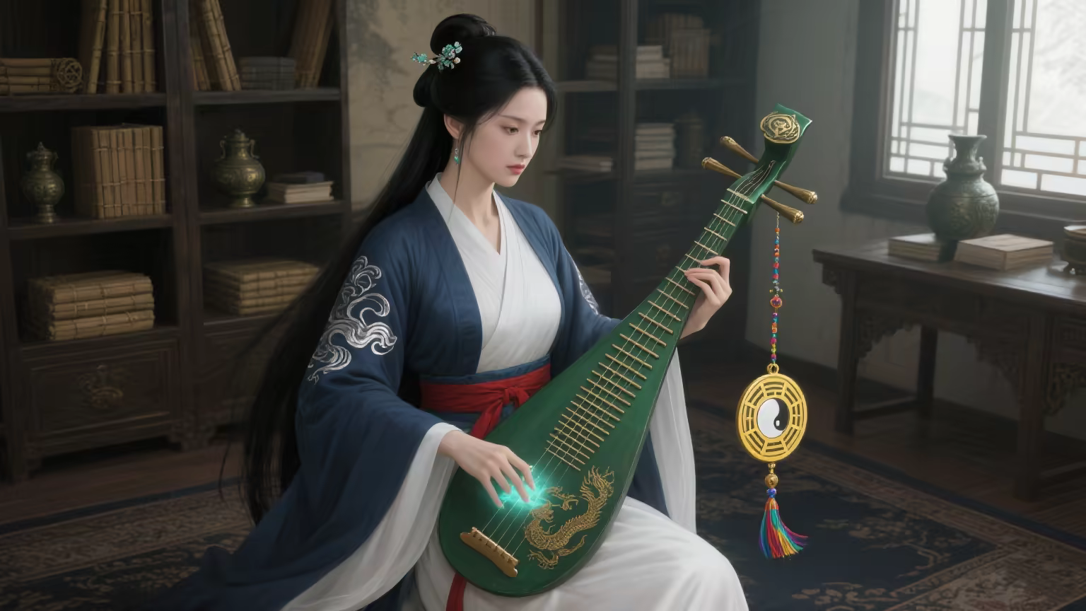 绿绮是汉代著名文人司马相如(卓文君丈夫)使用的一张名琴。司马相如得到绿绮后如获珍宝,他的精湛琴艺赋予了绿绮绝妙的音色,使得绿绮名噪一时。绿绮通体黑色,隐隐泛着幽绿,有如绿色藤蔓缠绕于古木之上,因而得名“绿绮”。