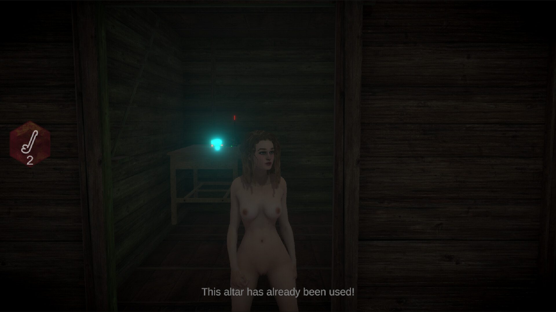 This game contains depictions of nudity and sexual content. The player character is a naked woman moving through the game environment, who is chased by another naked figure. When the player is caught, a short jump scare occurs.