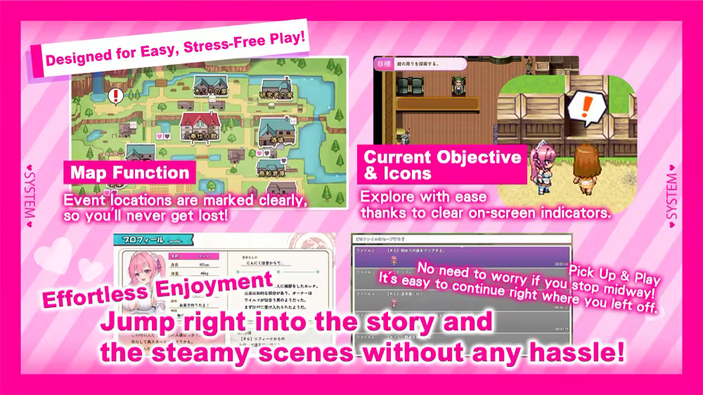 ◇ Systems: Erotic Status & Anti-Frustration Features (Map, Objectives, etc.)