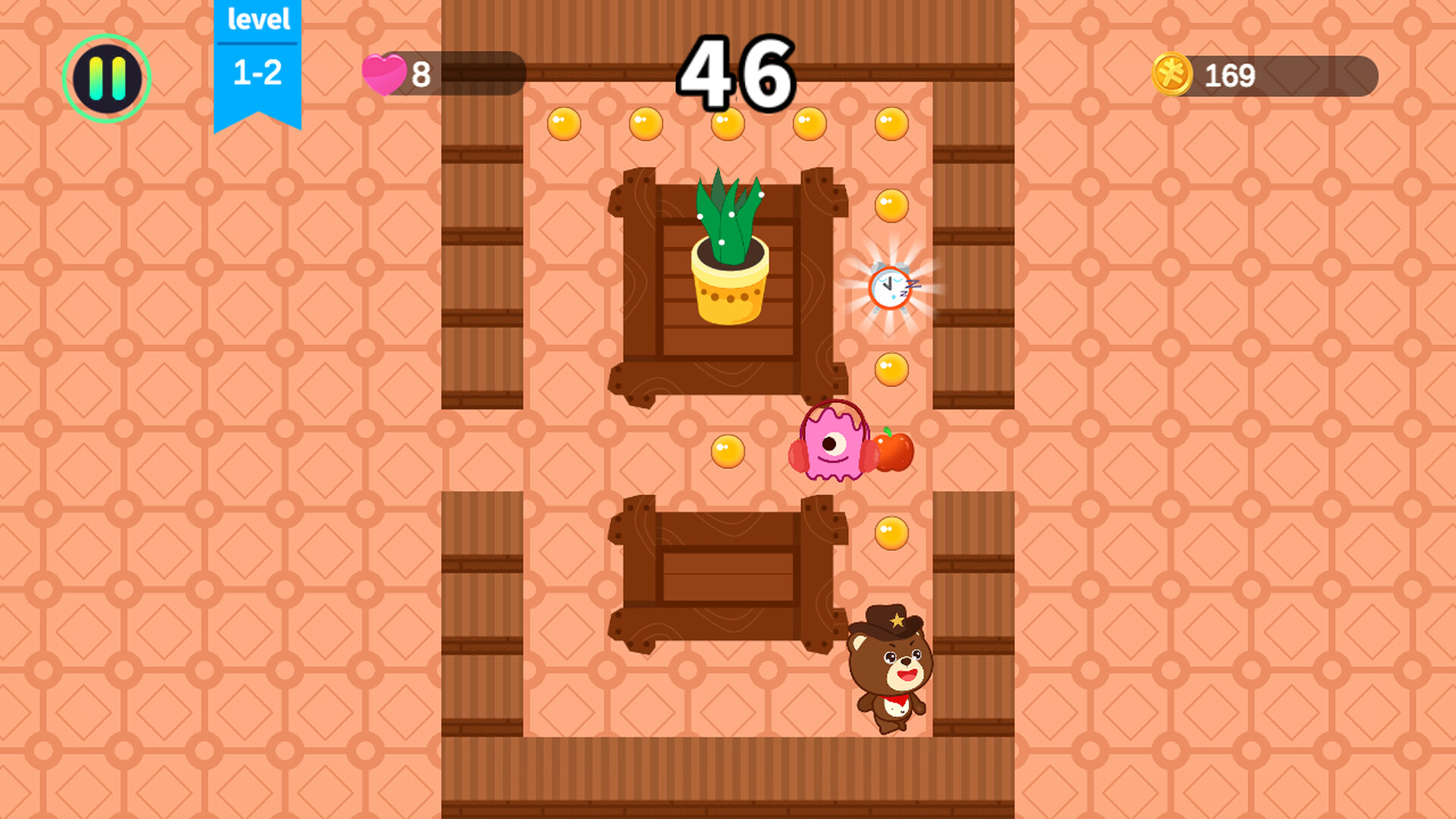 Story mode: There are over 100 levels, and players need to control their game characters to finish all the beans in each level to clear;