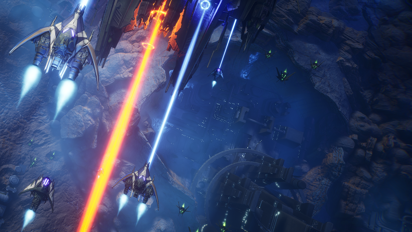 • Use the environment to your advantage: impale foes on deadly sky lasers, evade asteroids, refract your beam with crystals, collide large ships into each other, and dispatch wingmen drones to assist you.