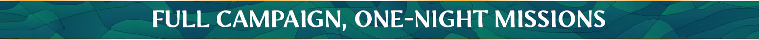 Unfold an epic story-driven campaign spanning through four themed Chapters split into multiple self-contained Missions. Each can be completed in a one-night session and offers a unique, replayable experience. Perfect for game night!