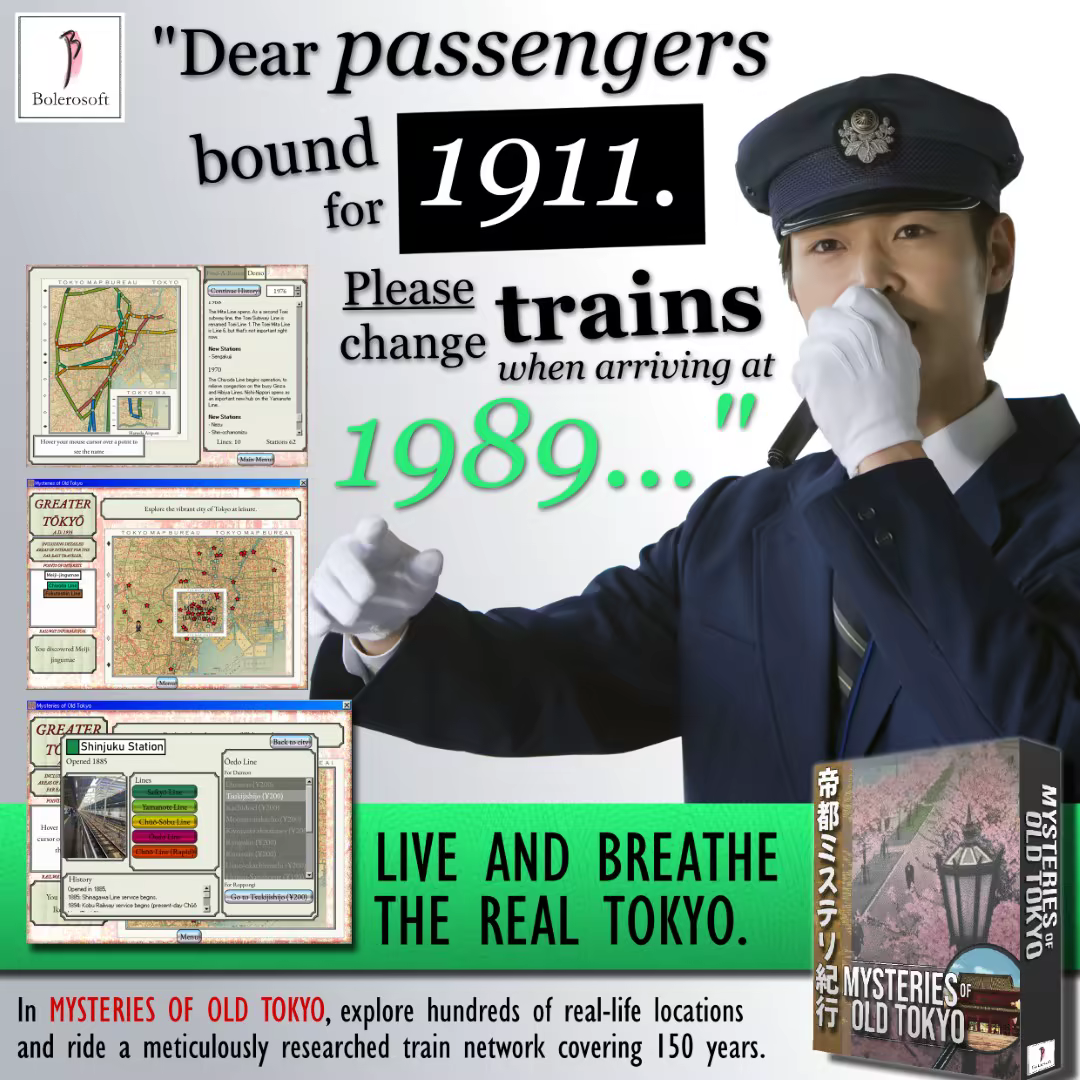 As an agent for Rare Item Acquisitions, you'll come to know Tokyo like the back of your hand. As you explore, plot the best routes using Tokyo’s historical train networks to save time and money. Your expense account is not bottomless!