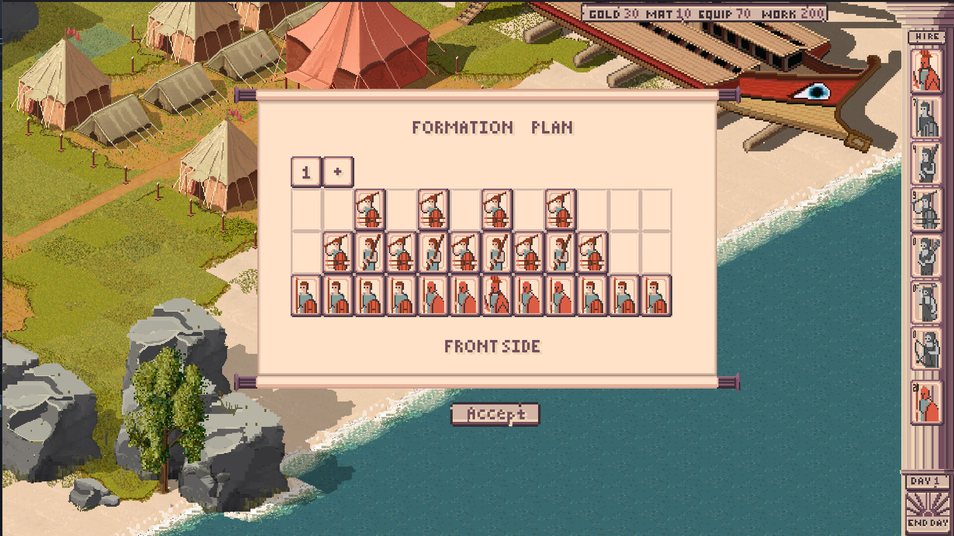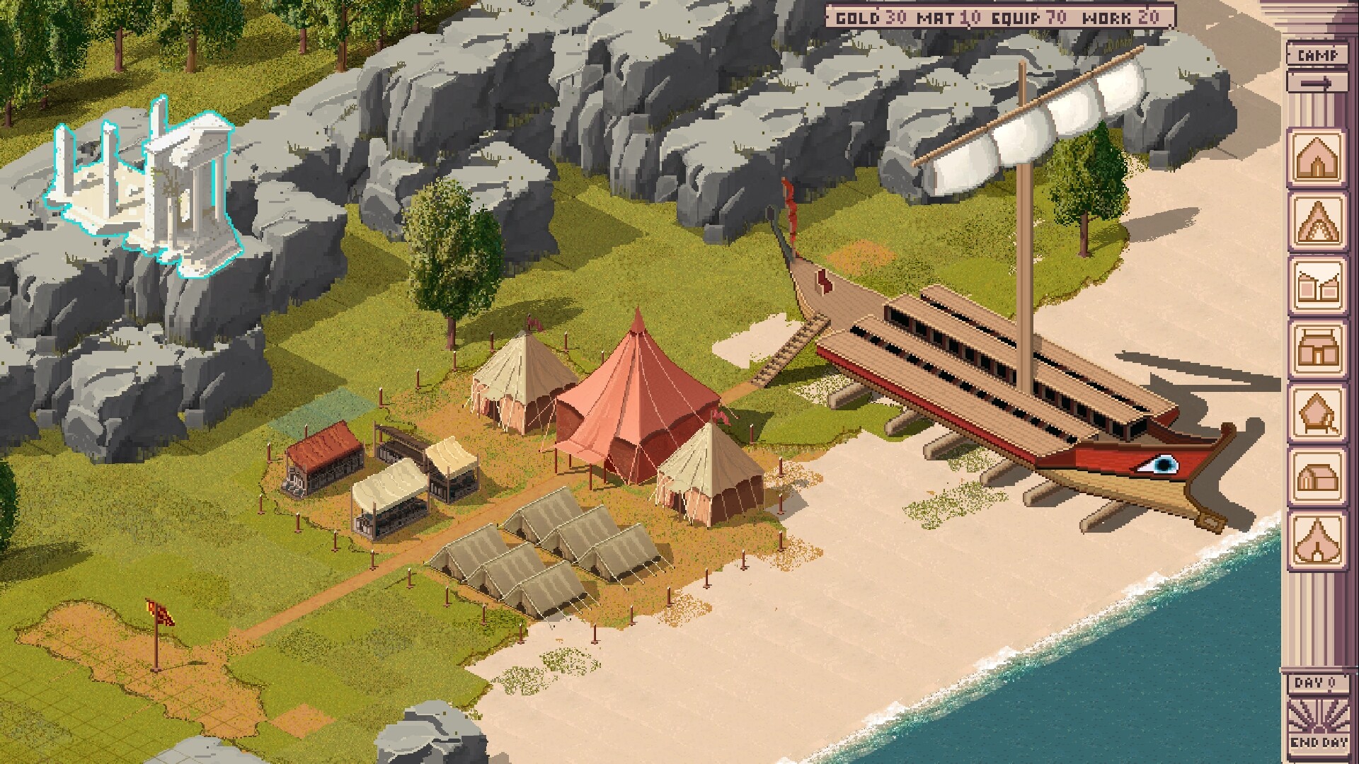 Sail to uncharted lands as the leader of a Greek expedition. Land ashore, set up camp, and fight tactical turn-based battles. Use a variety of unit types and mechanics. After completing missions and resupplying, repair your ship and journey onward.