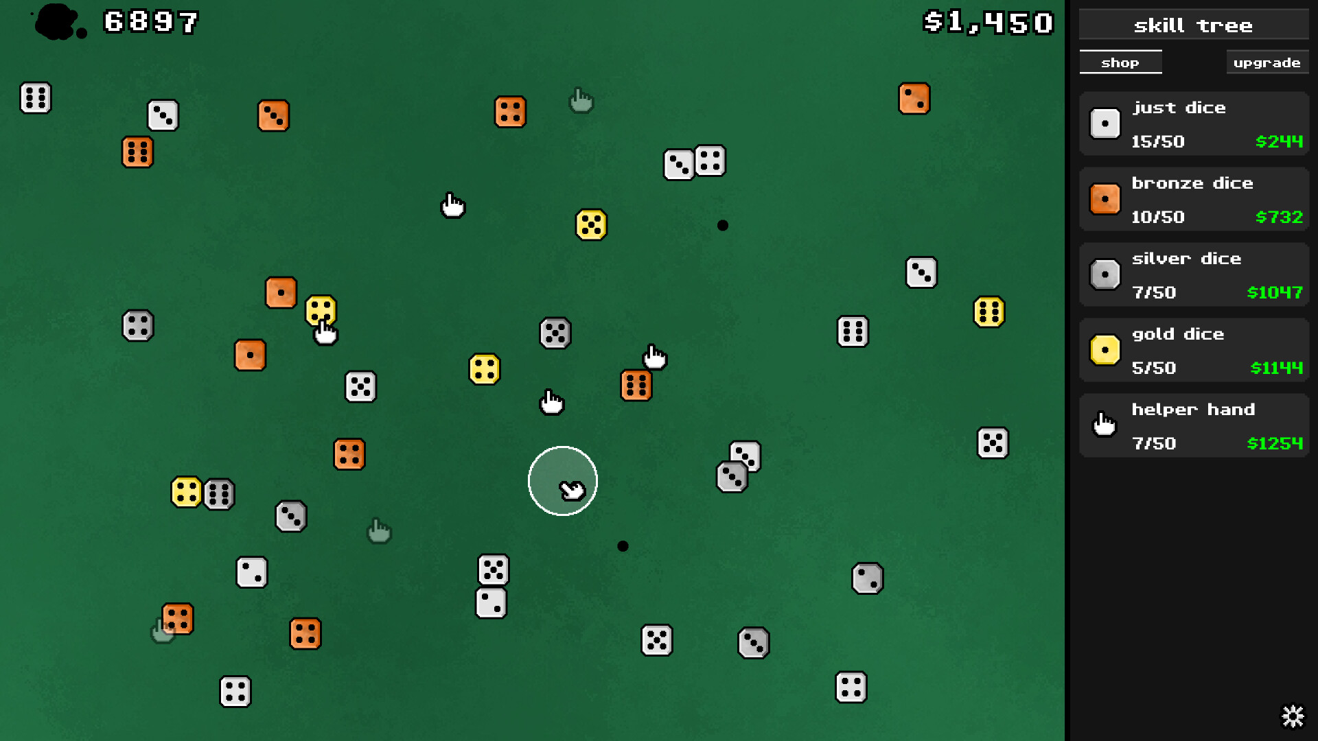 Incredicer is an incremental dice game where you roll dice, earn money, upgrade and buy helper hands to automate and increase your income.