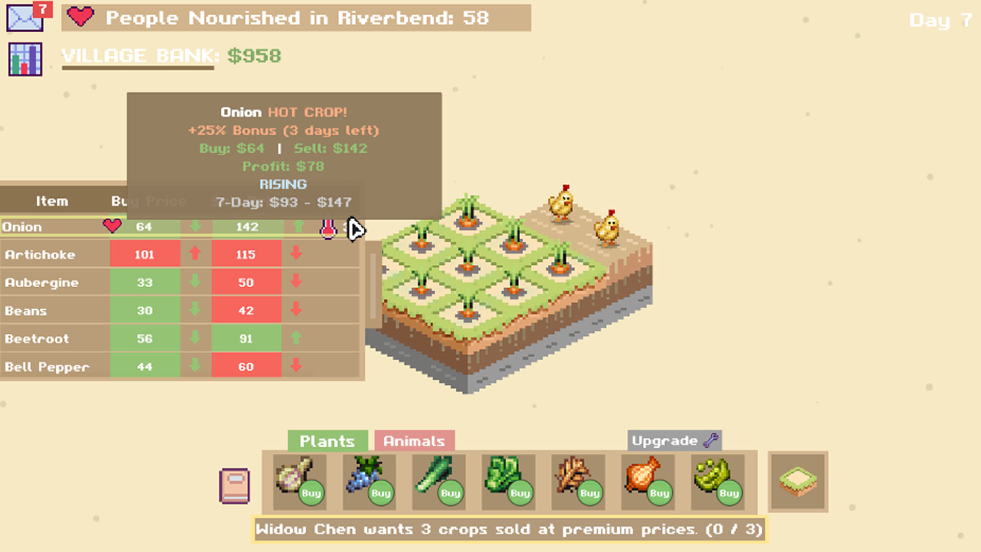 Crop prices change daily. Village demand never stays still. Can you grow smart enough to keep everyone fed?