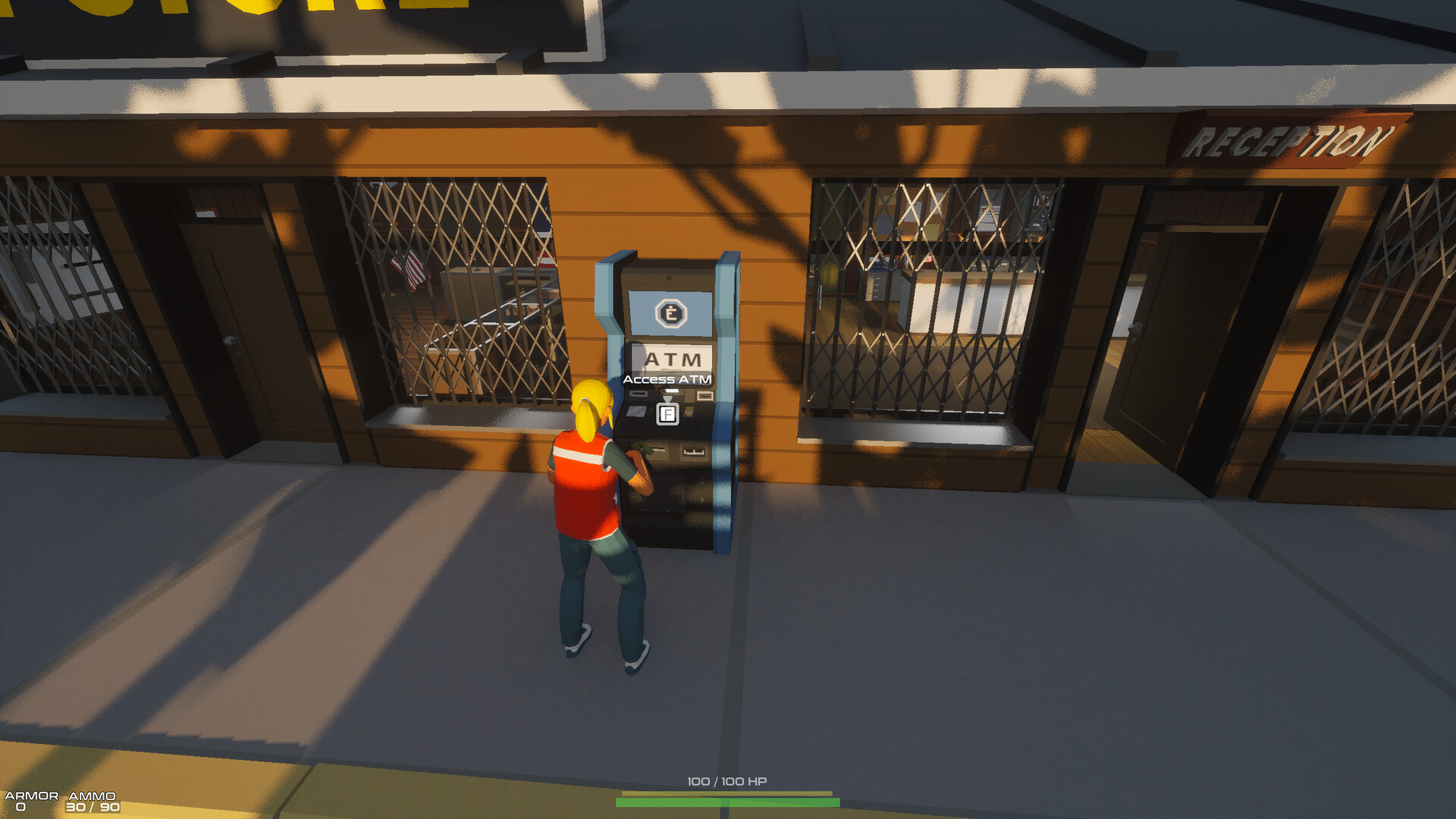 Store weapons and gear, deposit cash, trade with vendors, and customize your character.