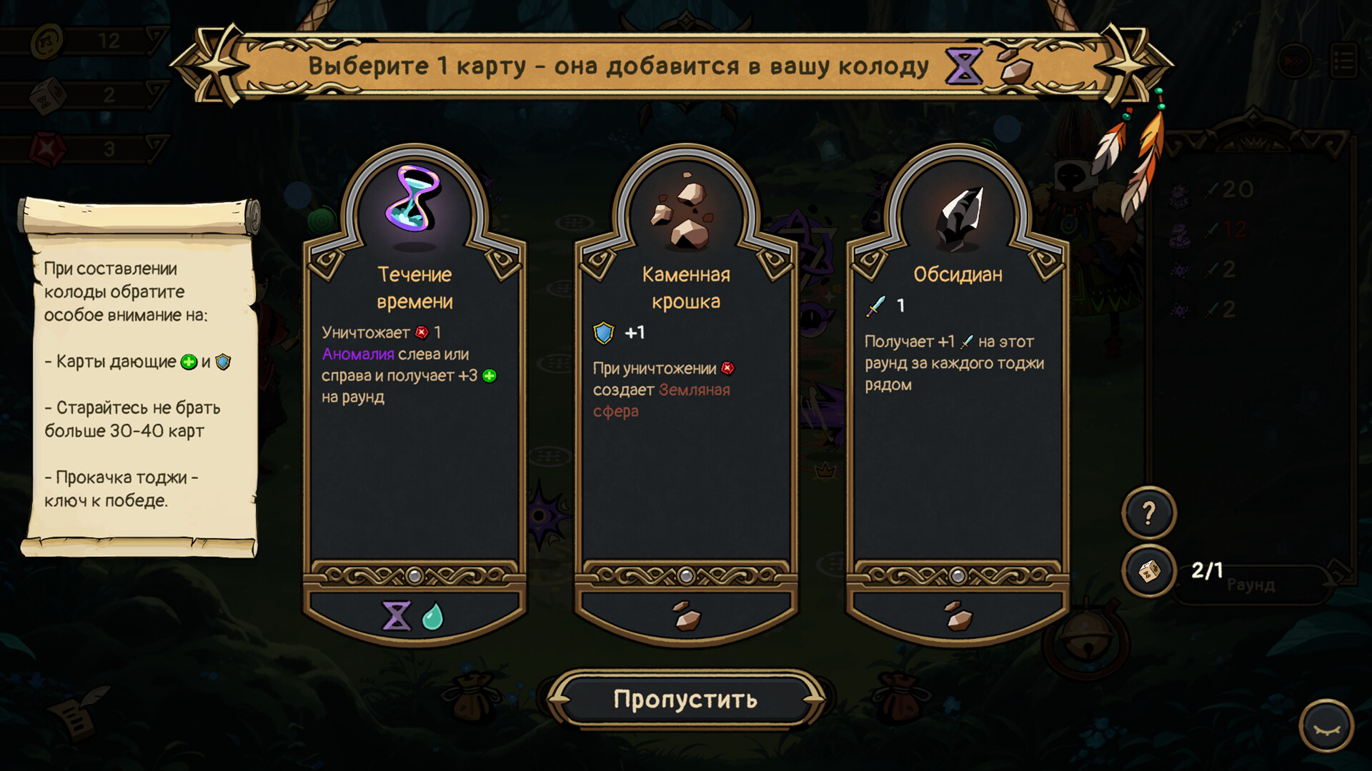 Вы решаете, какие карты будут в вашей колоде, но какие из них окажутся на поле и где они будут расположены — решает случай. Однако хорошая стратегия поможет вам взять контроль над ситуацией в свои руки. Правильный сбор колоды — это единственное, о чём вам нужно беспокоиться!