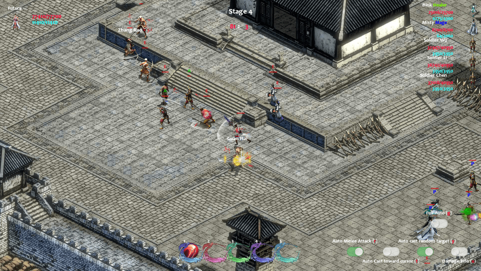 • Three auto type: Switching between 100% player control, auto melee, auto spell cast towards mouse cursor direction, auto spell cast at nearest enemy and full auto turning your main controlled character into AI easily by on/off switch on interface.