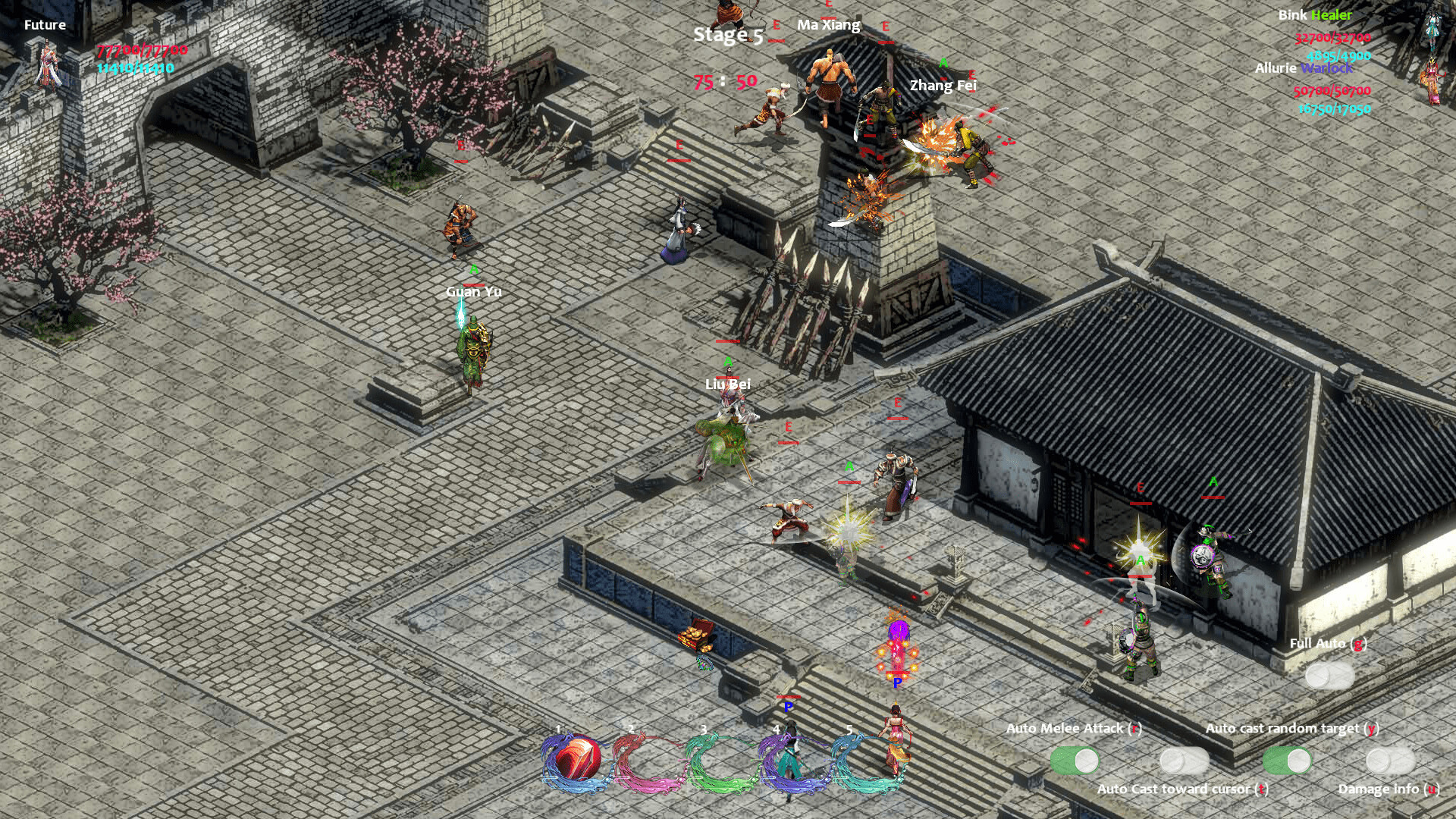 • Three auto type: Switching between 100% player control, auto melee, auto spell cast towards mouse cursor direction, auto spell cast at nearest enemy and full auto turning your main controlled character into AI easily by on/off switch on interface.