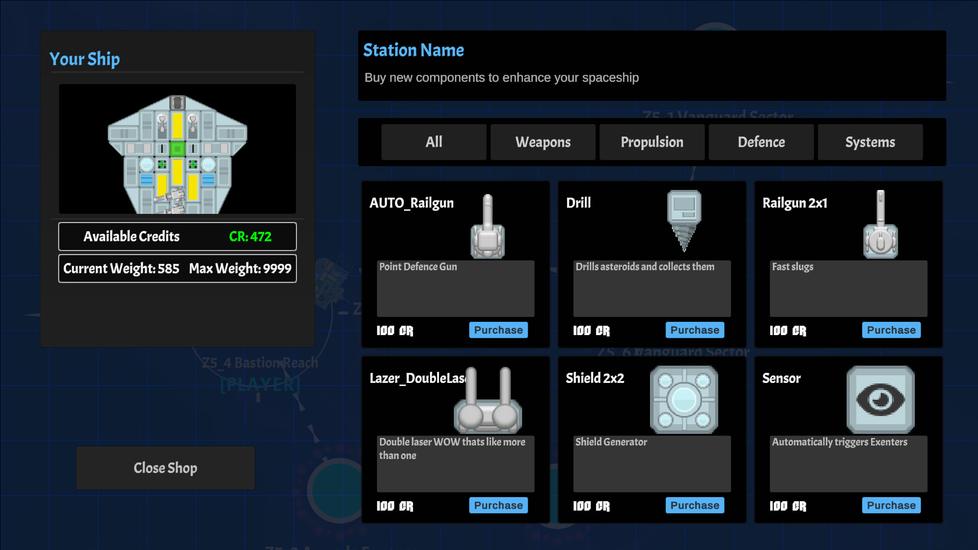 Mine asteroids, because rocks don’t shoot back. Blast enemy ships, because they got in your way. Now they’re spare parts. Every battle earns you credits, wreckage, and new problems: a thruster that spins you out of control, a reactor that may or may not  be on the edge to explode, or a cannon that’s way too big for your frame (perfect).