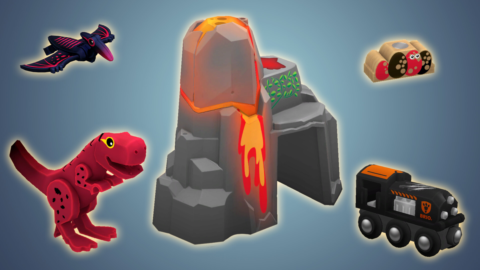 Travel back in time to a land where trains and dinosaurs roam together! Build your railway through lush cherry groves and roaring volcanoes. Meet the towering Brachiosaurus, the gentle Triceratops, and the mighty T-Rex. Fly alongside Pteranodons, collect dino eggs, and hop aboard the special Dino Hood Engine to explore this prehistoric playground. Adventure, charm, and a touch of Jurassic wonder await!