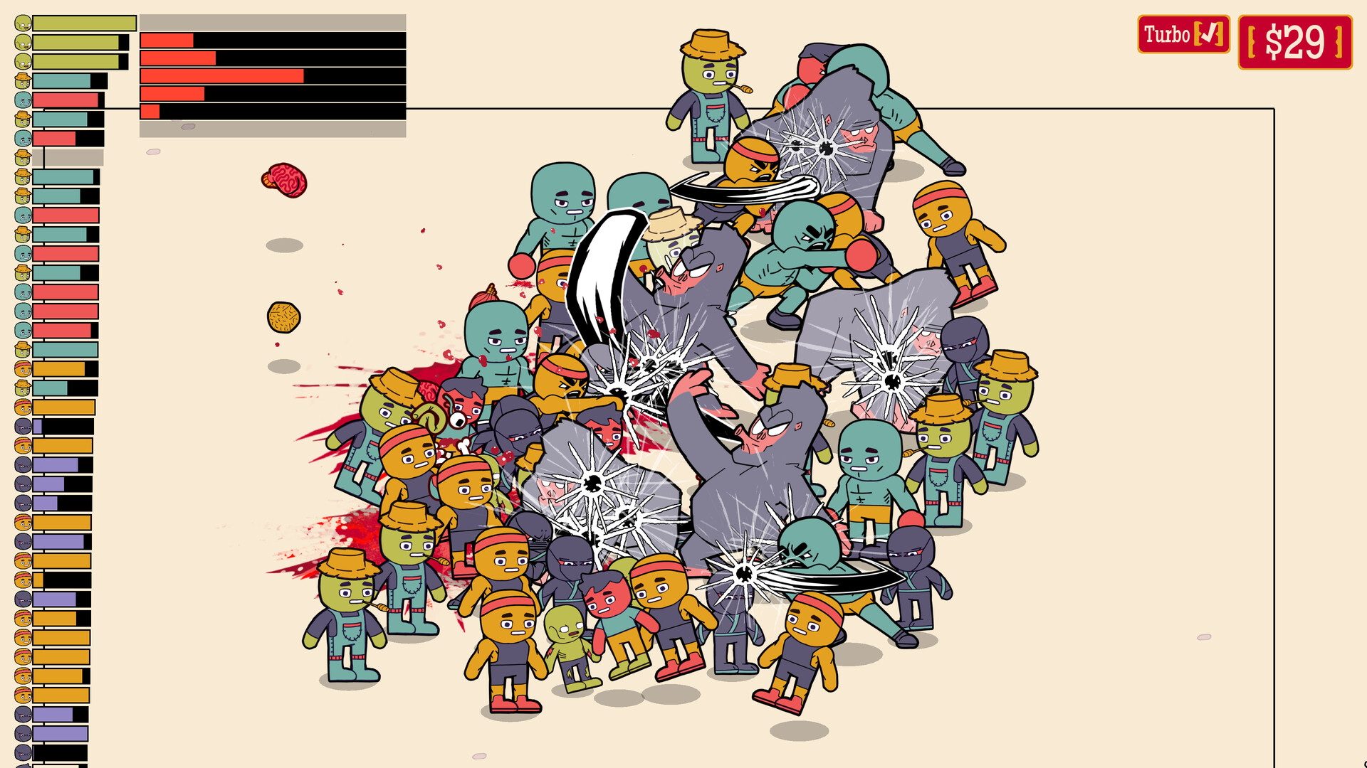 A dude-builder roguelike where you recruit an army of dudes to fight ridiculous battles. How many dudes does it take to beat up a gorilla? A thousand toddlers? A horse-sized duck? A GOD? Enter your Dude Ranch and find out.
