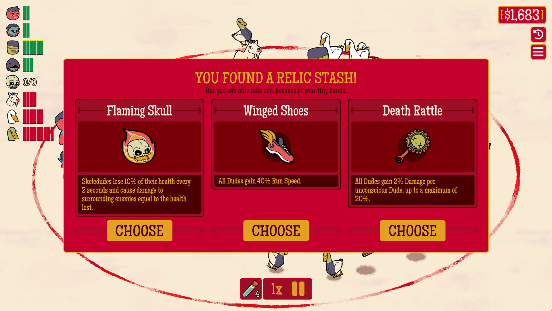 • Each run brings a fresh batch of Dudes for you to choose from.