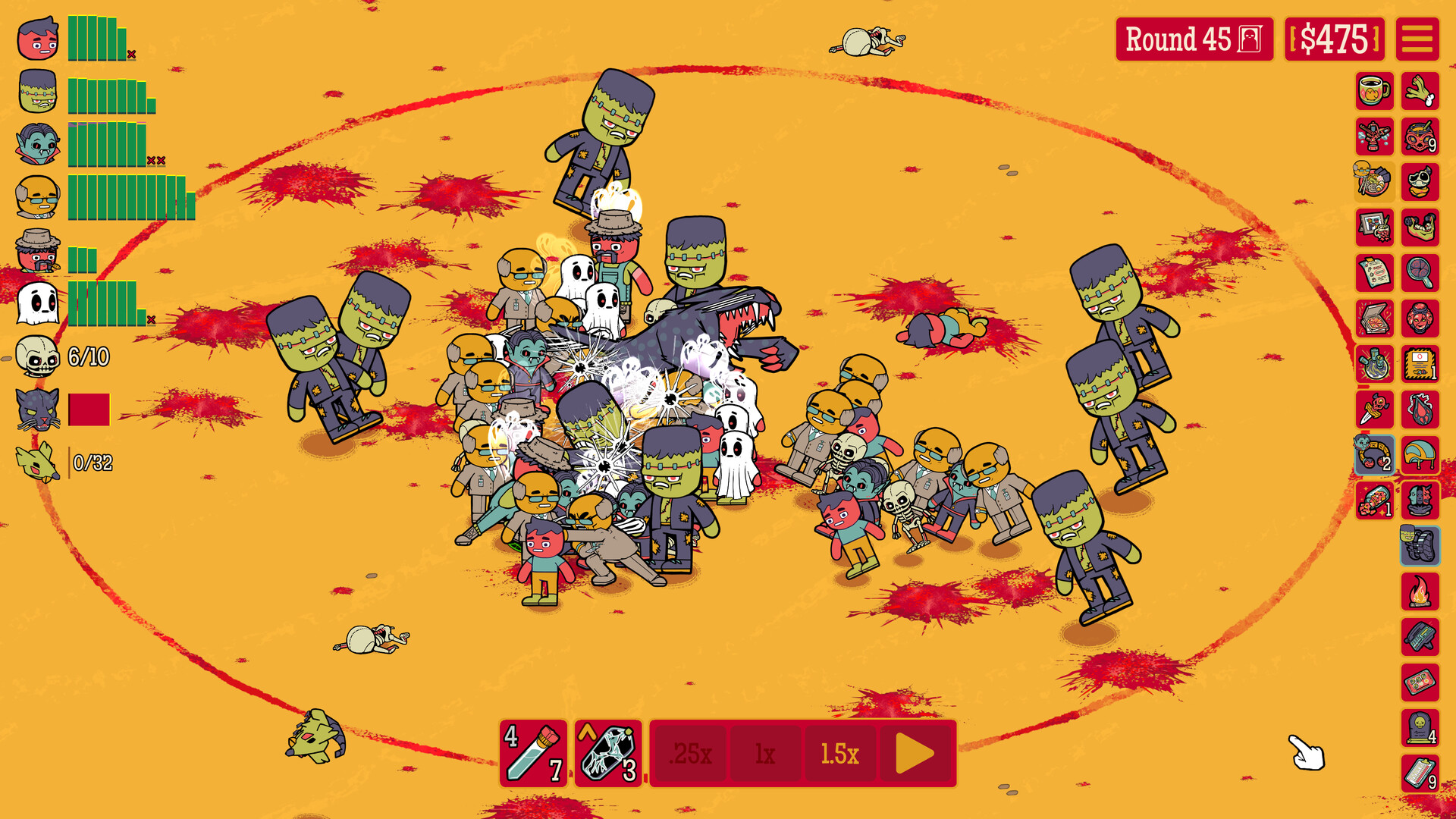 Face escalating enemy waves—from toddlers to wolves to gorillas to gods