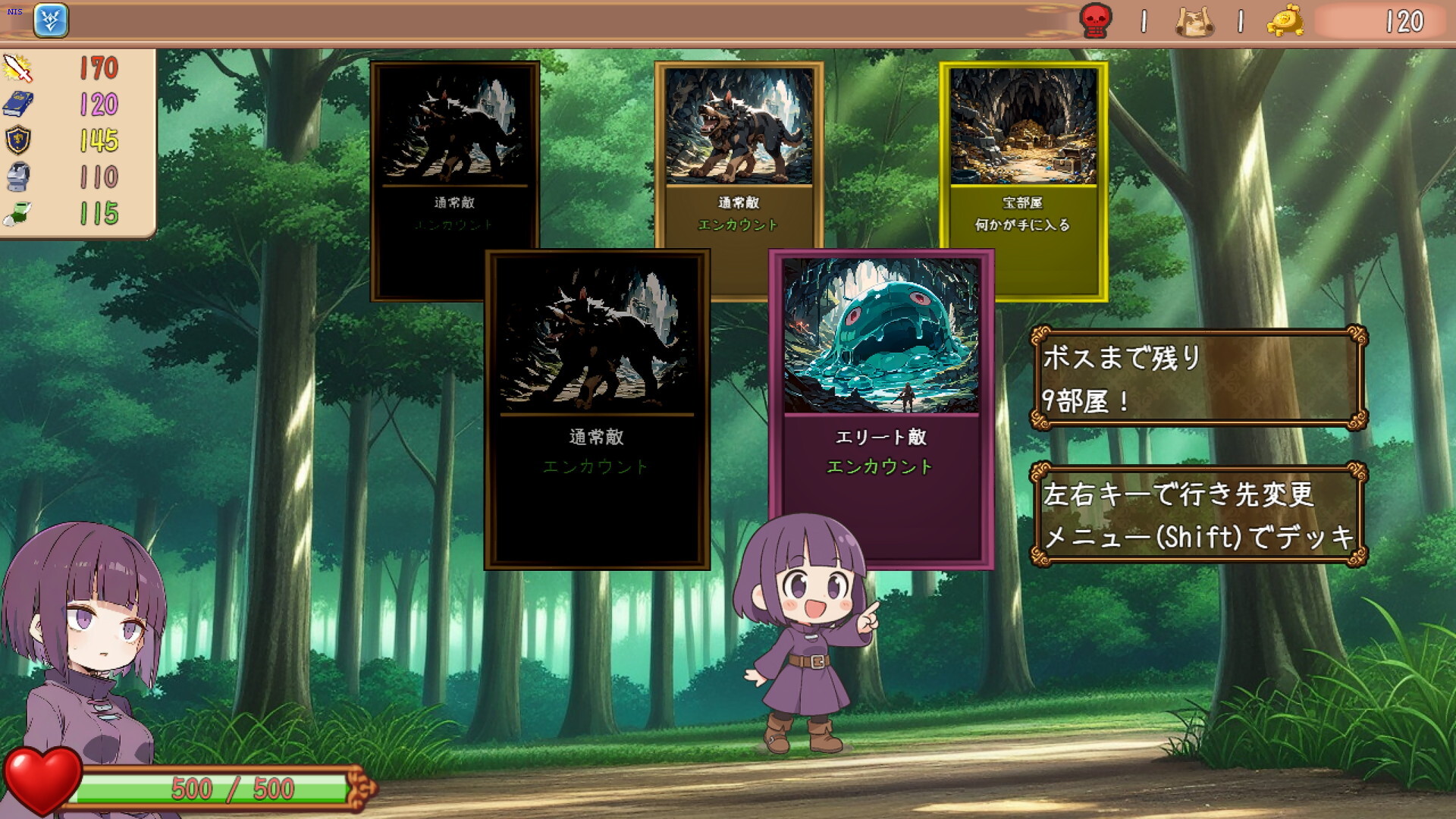 行き先を選びながら、デッキを強化し、最深部のボス撃破を目指そう!