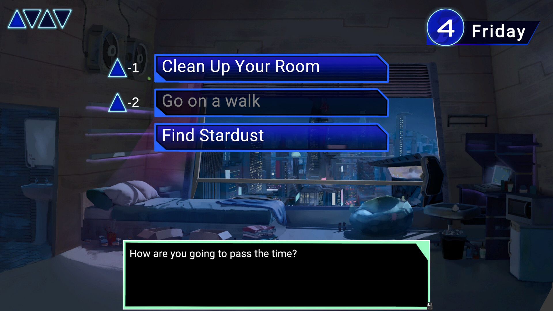 30 Days: A Sobriety Simulator is a deeply resonant cyberpunk visual novel / life sim that puts you in the shoes of a recovering addict during their first 30 days of sobriety, struggling to rebuild their life, reconnect with their community, and avoid relapsing. “Stardust” is a drug that makes many promises: an escape from stress and trauma, relaxation, and a feeling of being more than just “part of the machine”. But there’s a price to be paid, and there are other people who need you. Lives to touch, connections to make. What will you choose?