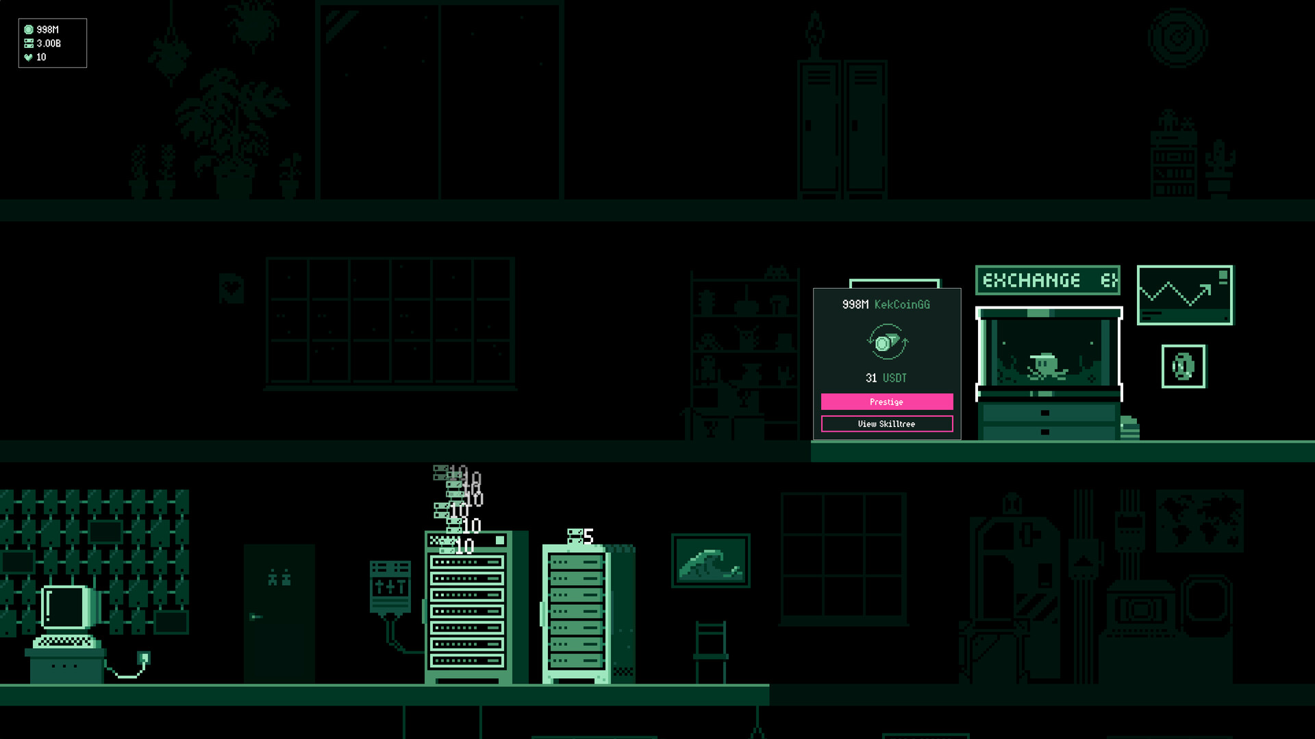 Turn a cozy room into a humming crypto fortress in this clicker incremental game! Build mining rigs, mint your own crypto currency, upgrade your setup, and automate your grind. Watch numbers climb, prestige for power, and push your crypto empire until you break the world economy!