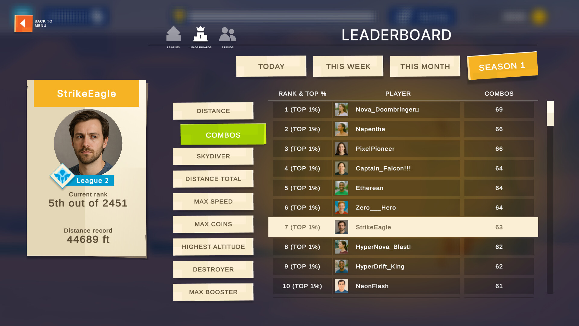 Bronze-to-Diamond leagues reset every month. Distance, speed, or most combos - there’s a leaderboard for it. Climb high, earn exclusive skins, and become the top penguin-launcher on Earth.