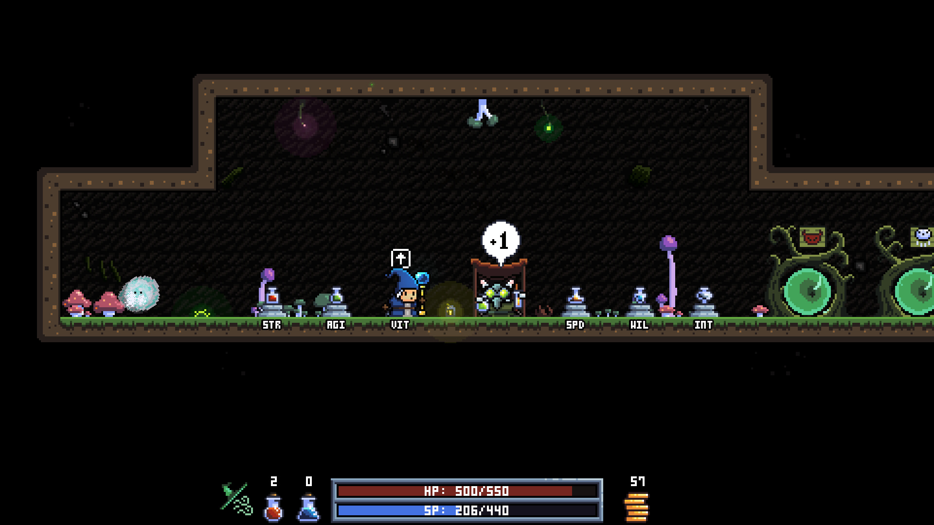 Customize your hero by choosing your base stats, class, weapon load-out, and passive skills! Your build determines how fast you run, how high you jump and of course how much damage you deal! Test your build on a monster-slaying adventure, leveling up as you go.