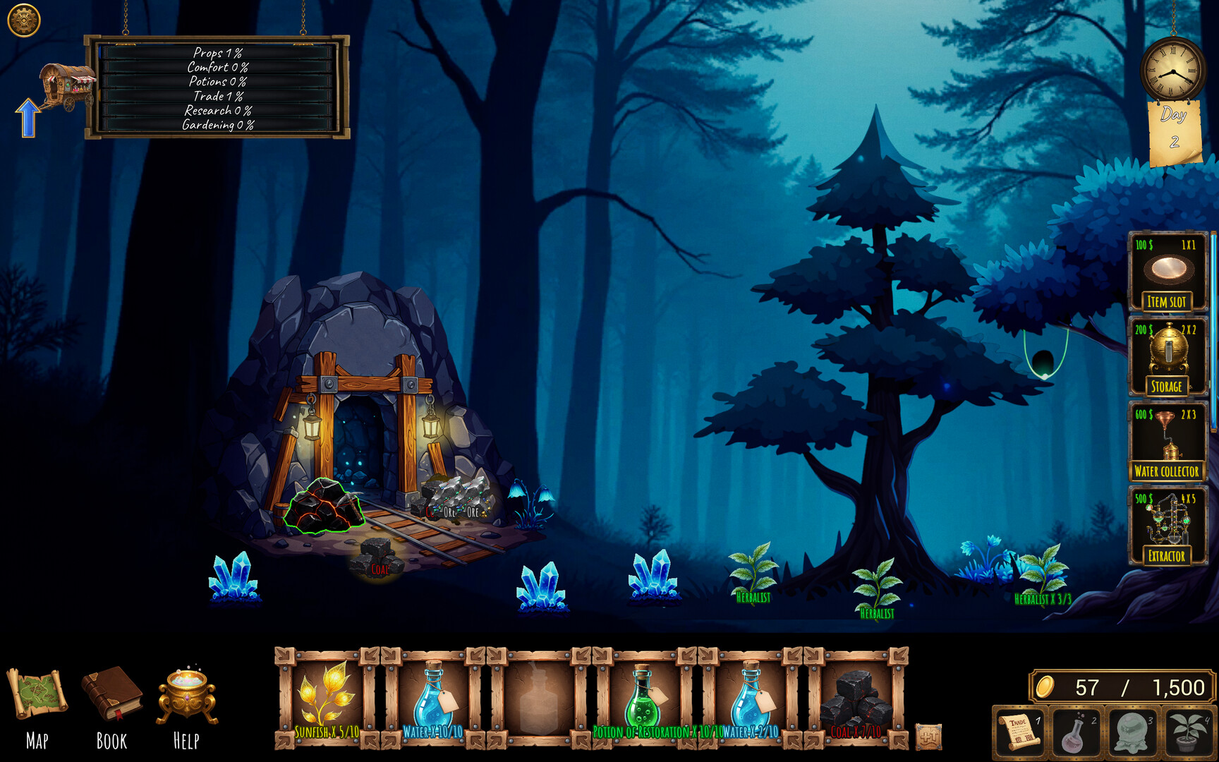 Werde ein Waldalchemist in einem fahrenden Wagen! Bauen Sie Kräuter an, sammeln Sie seltene Zutaten, stellen Sie Tränke an alchemistischen Maschinen her, handeln Sie mit Waldbewohnern und erkunden Sie neue Orte. Von einfachen Extrakten bis zu mächtigen Elixieren