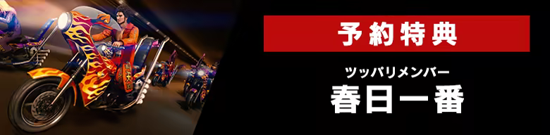 『龍が如く 極3 / 龍が如く3外伝 Dark Ties』をご予約いただくと、シリーズ人気キャラの”春日一番”がツッパリの龍のメンバーに追加される「ツッパリメンバー 春日一番」が予約特典として付いてきます。