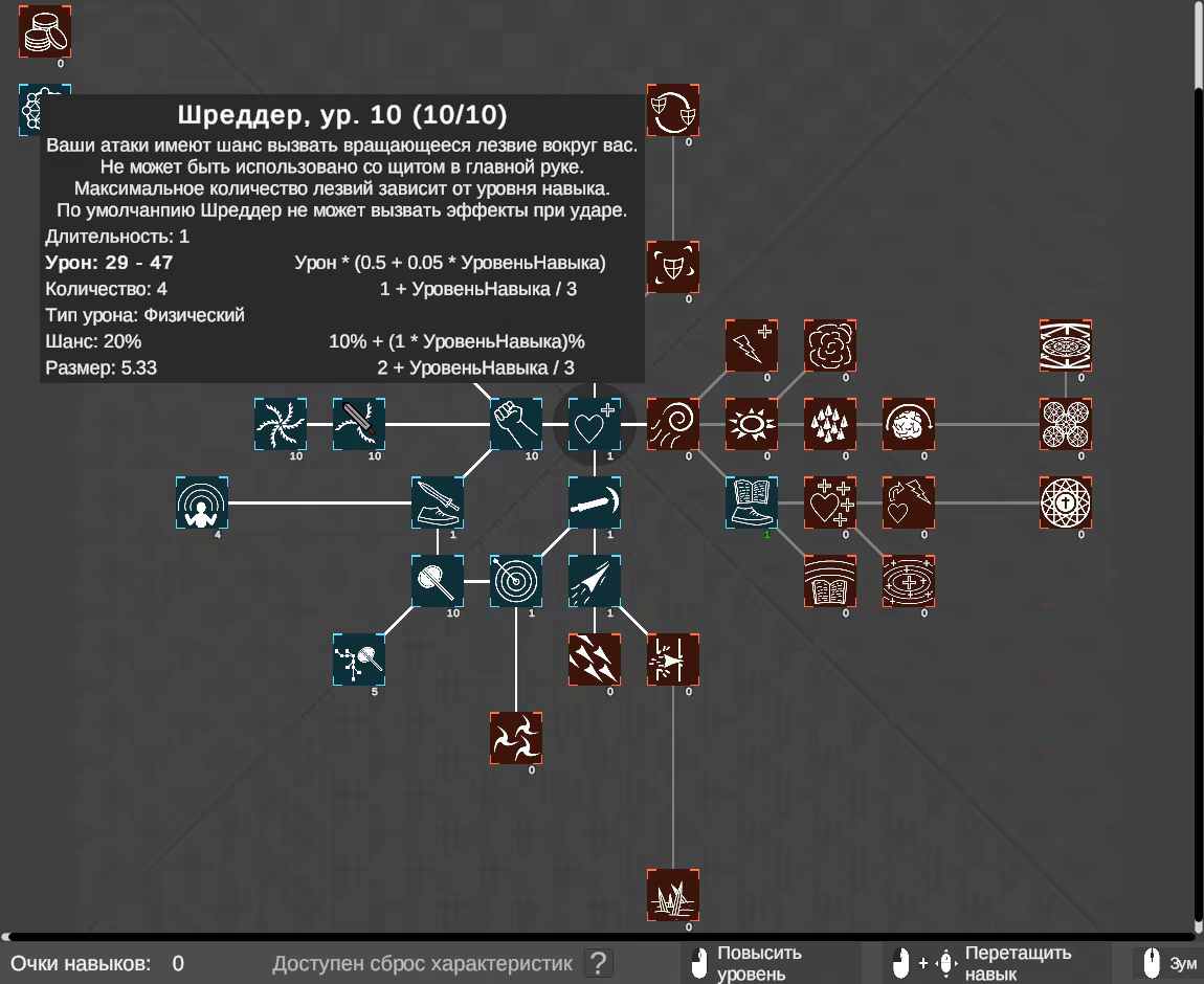 Вам доступны как активные, так и пассивные навыки. Некоторые из них приносят пользу не только своей ветке, но и другим - вы вольны комбинировать и искать, что для вас лучше.