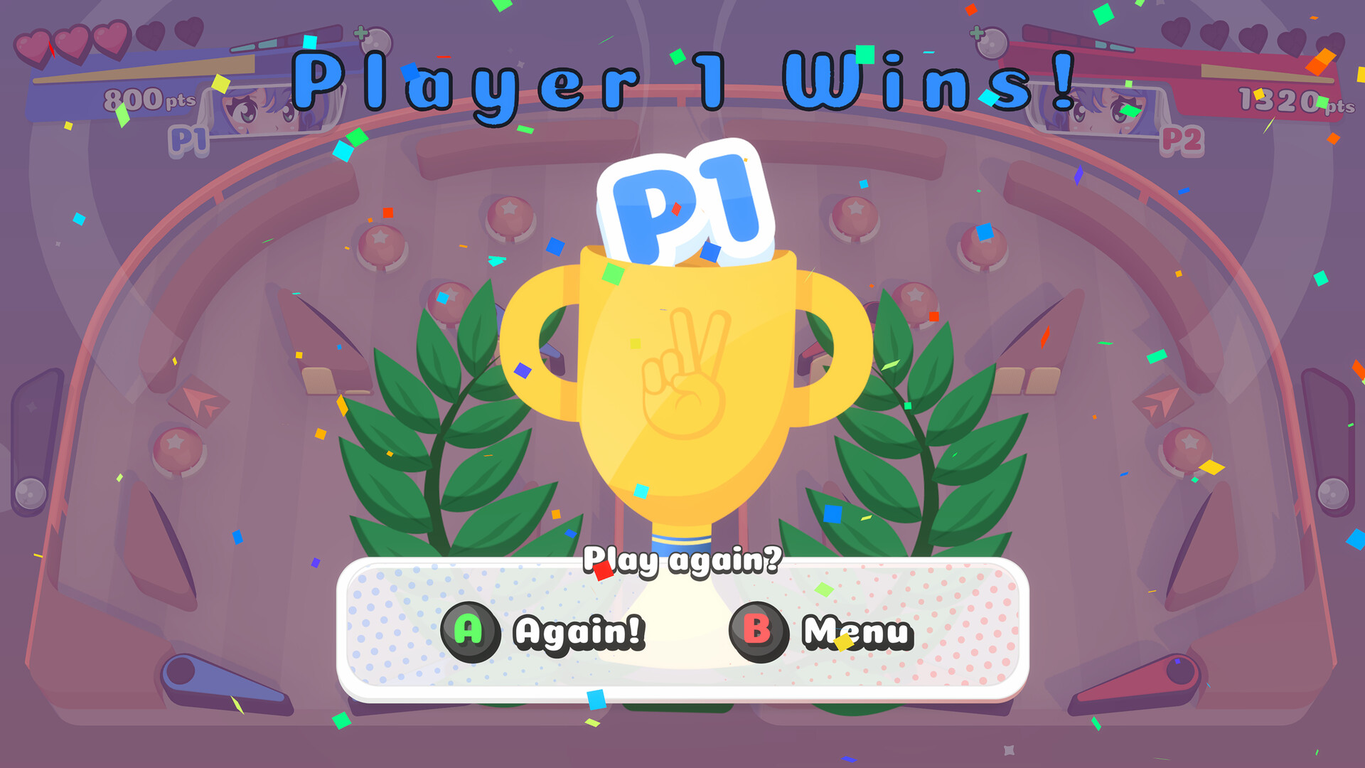 Bump about with Bumper Bout! A competitive pinball party game where two players share the same playfield. Earn points to launch balls to other’s sides and see who can last the longest. Battle across a mix of quirky and colorful arenas each bursting with hazards and surprises. Master every character’s unique Super Ball, a game changing power move that can turn the match in an instant. With solo challenges, local and online multiplayer, and huge replayability, Bumper Bout is easy to pick up and hard to put down and the perfect recipe for laughs, rivalry, and arcade fun.