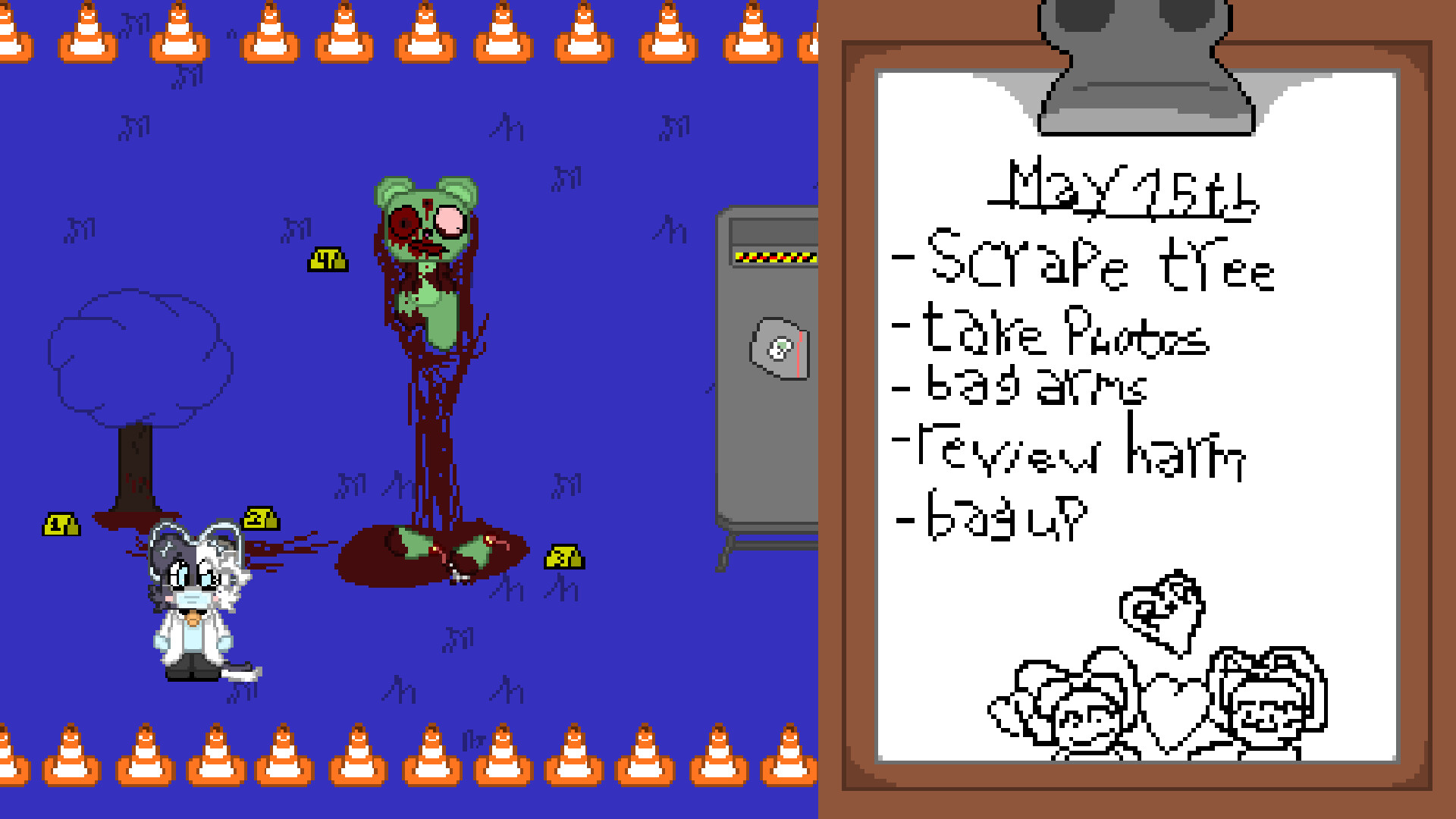 All you're given to work with is merely section 0 and a tad bit of section 1 to play, section 0 being the shortest when it comes to finished sections of the game. But for now... on section 0 you play as Azra, a lovely lady from a species discovered by humans named "Malinos", who went to work without knowing that someone she trusted was going to do something horrible to her, damaging her psyche and leading to the events of section 1. Which speaking of, here, you play as the lovely, totally not a psychopath, Rinny, a malino who is Azra's wife and a crazed psychopath (okay i lied about the "totally not a psychopath" part, my bad :<) who got hit by a rock by a robot called T.O.T.G, Who searches to encapsulate all of Rinny's city and take down Rinny herself in the process, do you think you're up to the challenge? or will you give up and close the game?