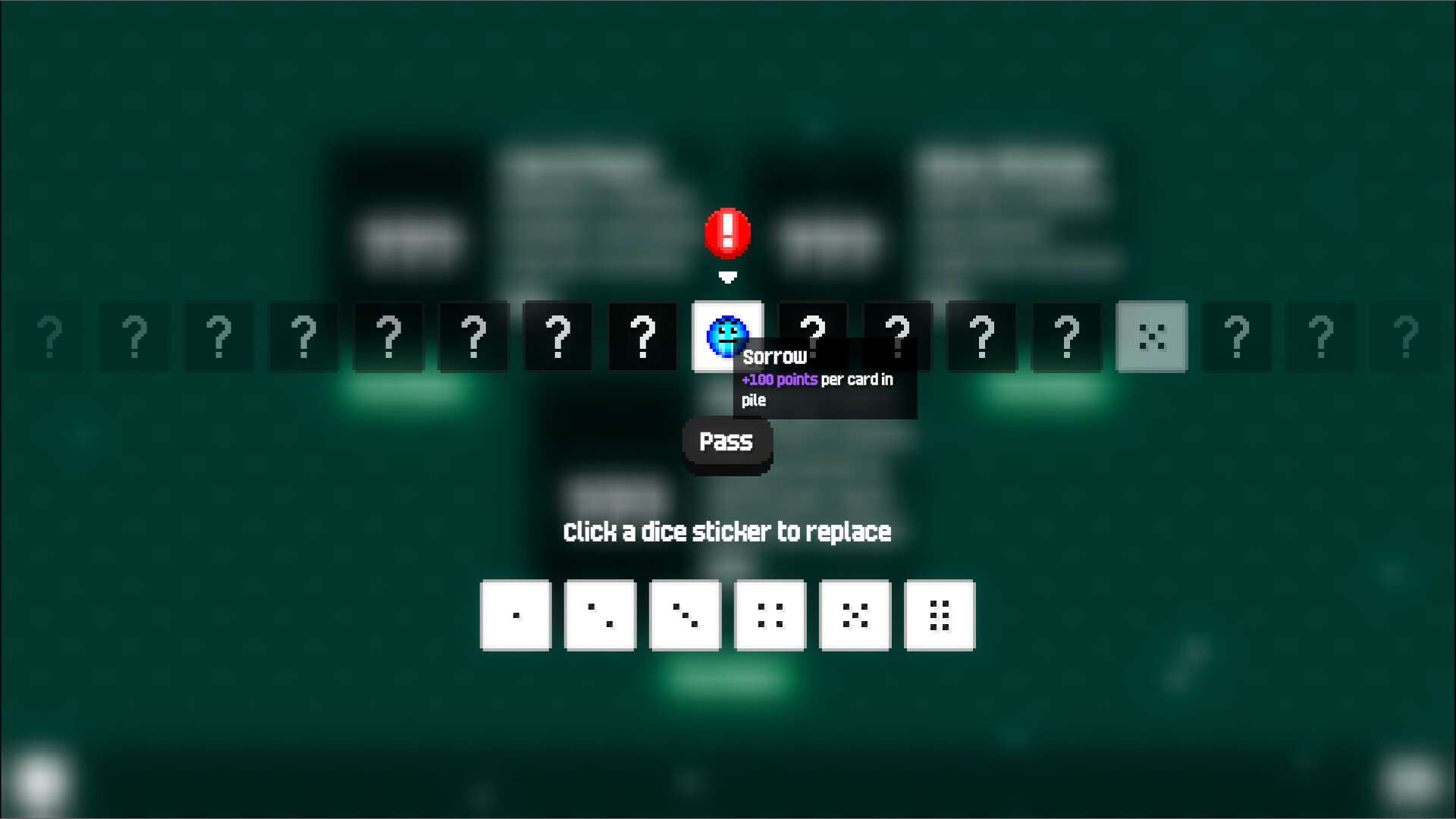 Your dice can be a major part of your run! When you roll your dice, it will eventually land on one of its 6 faces. At the start of your run, you'll have a default sticker on each face, but needless to say, you can use your money at the shop to buy much better stickers!