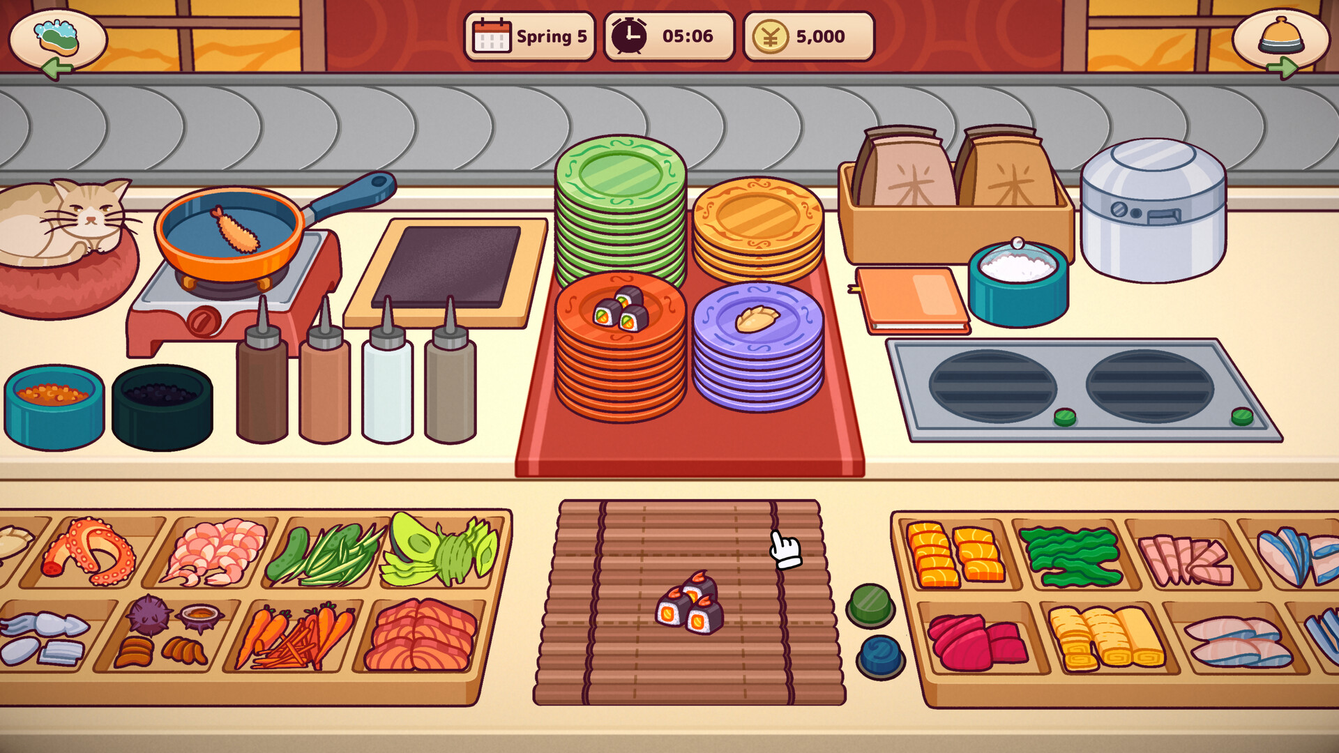 As the conveyor belt rolls on, so does your journey. Slice, roll, and plate a growing variety of delicious Japanese dishes, serve your customers with care, and grow your reputation one satisfied guest at a time.