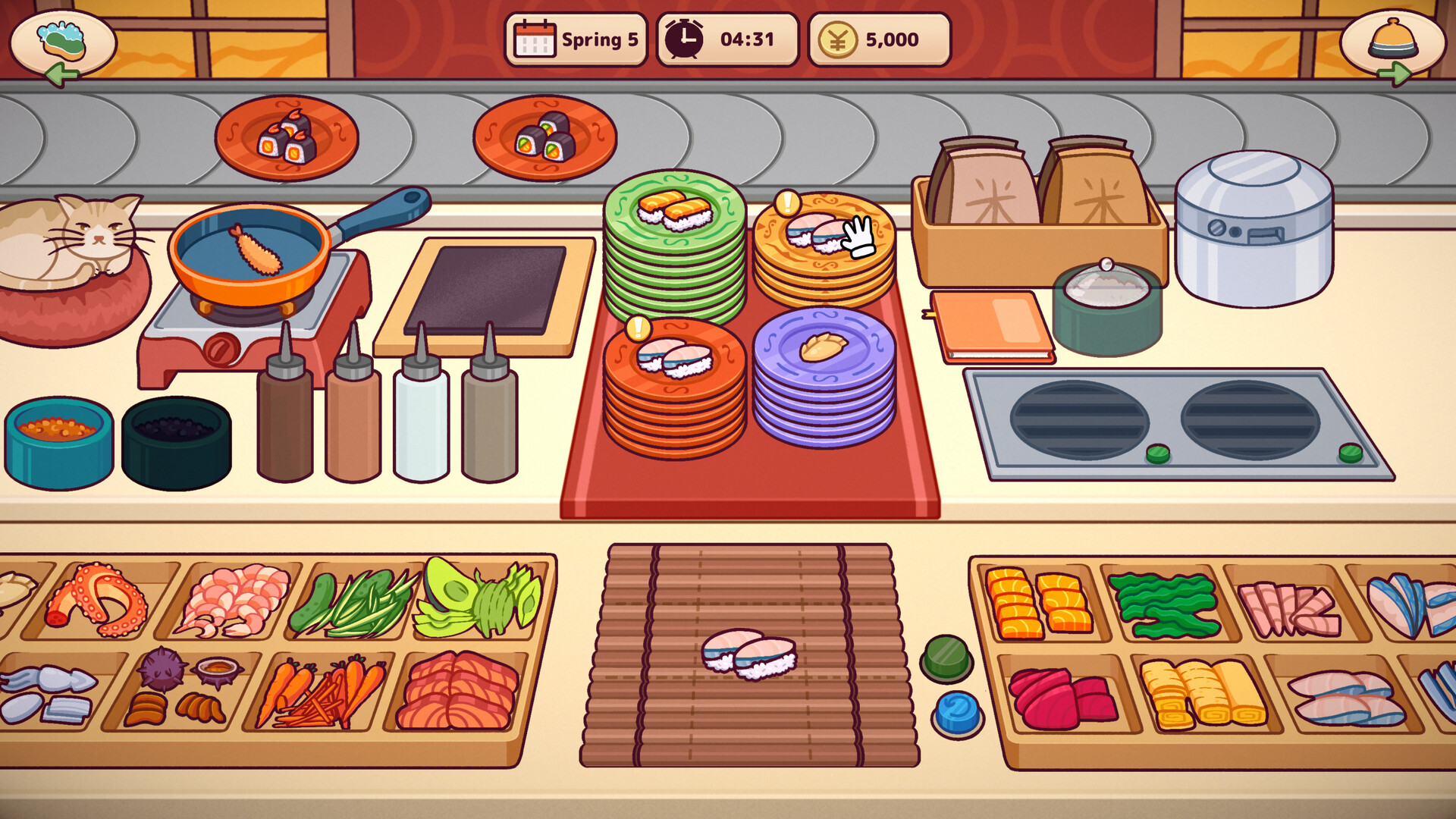 As the conveyor belt rolls on, so does your journey. Slice, roll, and plate a growing variety of delicious Japanese dishes, serve your customers with care, and grow your reputation one satisfied guest at a time.