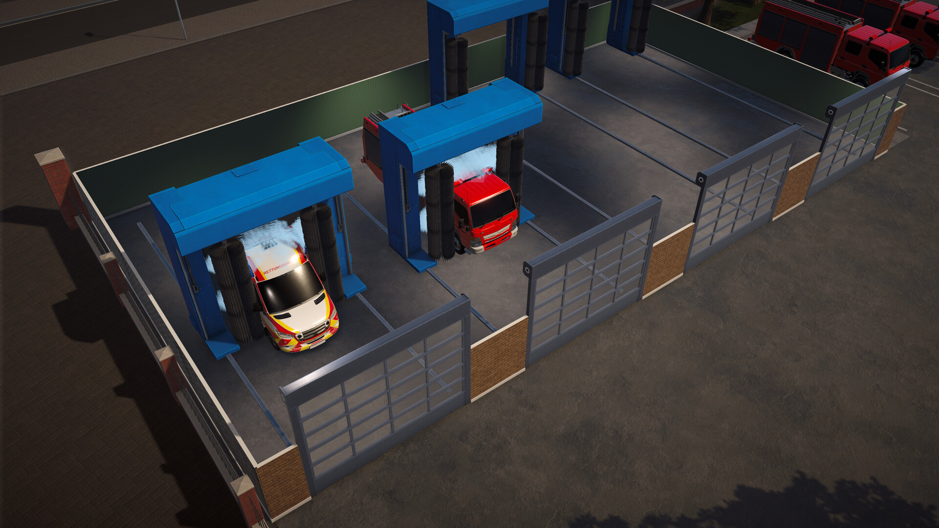 Planifica cuidadosamente la construcción: asegúrate de tener espacio suficiente para zonas de lavado, aparcamientos y más, para que tus vehículos de emergencia estén siempre listos. Al mismo tiempo, ten en cuenta oficinas, áreas de descanso e instalaciones sanitarias, para que tu equipo pueda trabajar de forma eficiente.