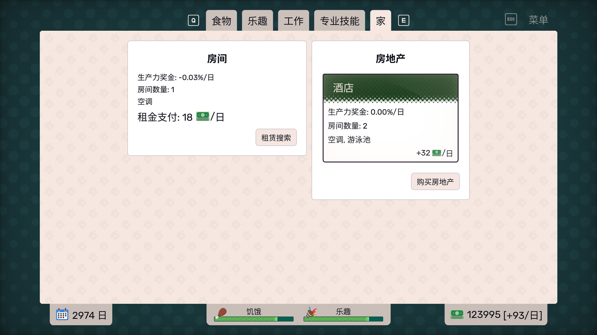 满足基本需求。从8大菜系20余道菜品中选择,击退饥饿。但要小心——无聊致死并非玩笑(不推荐尝试)!